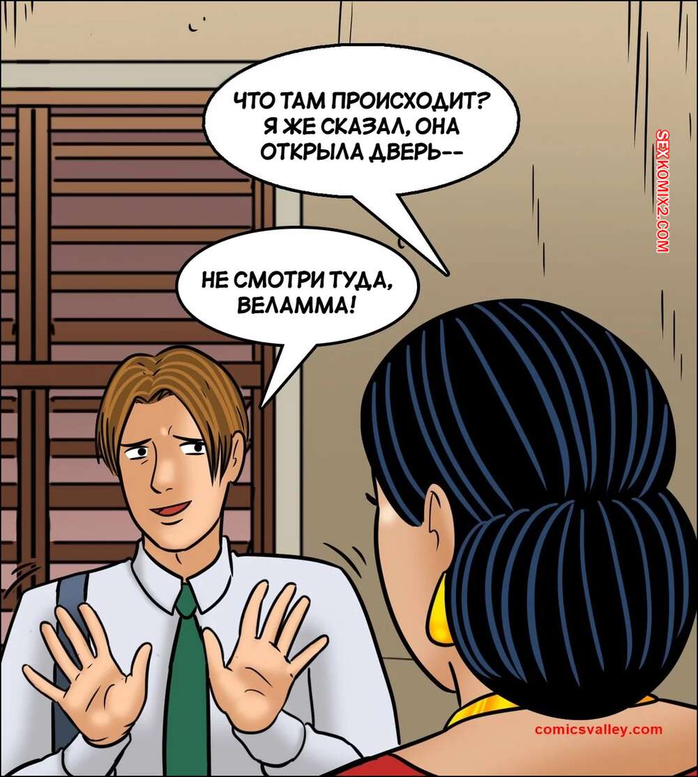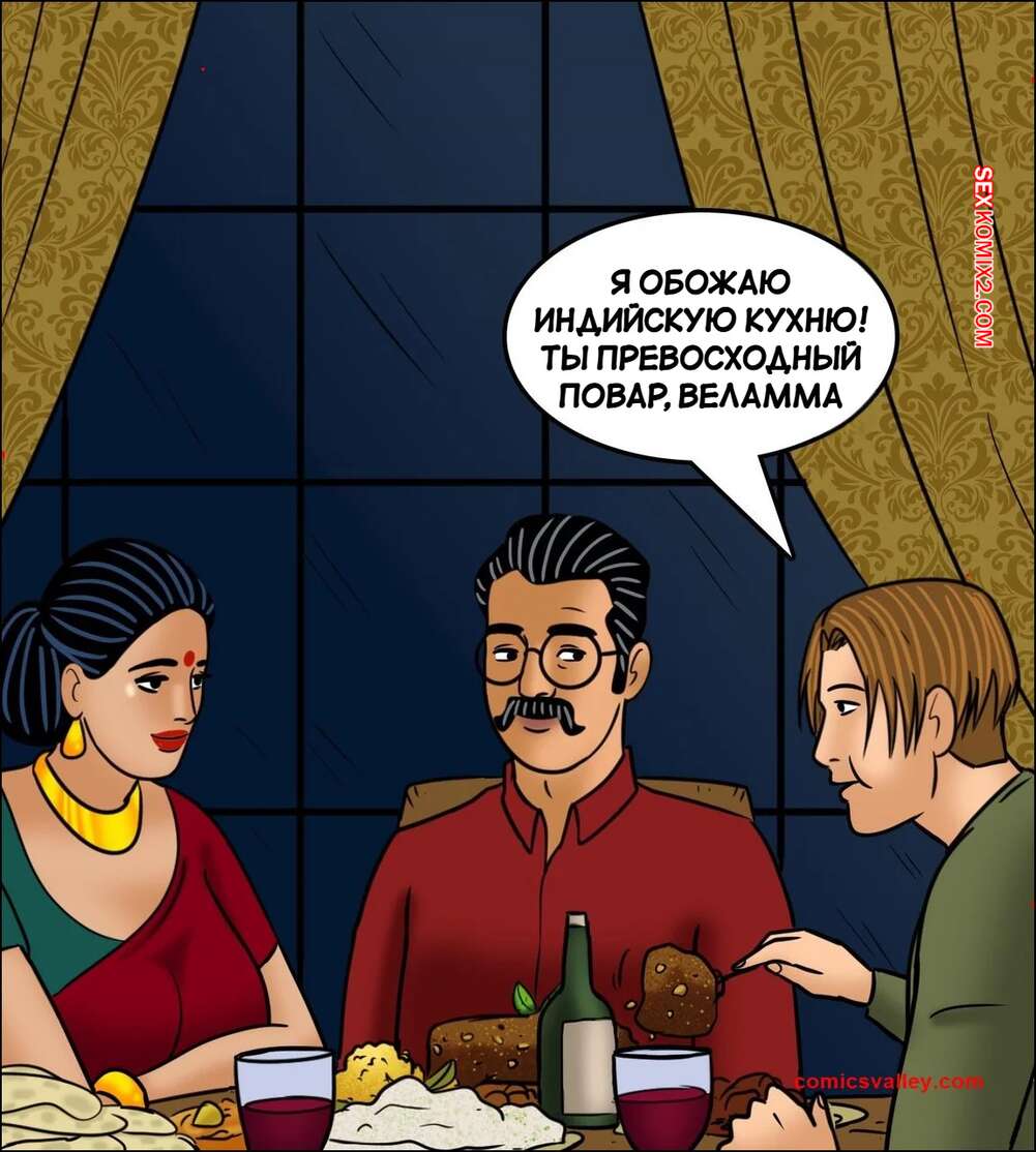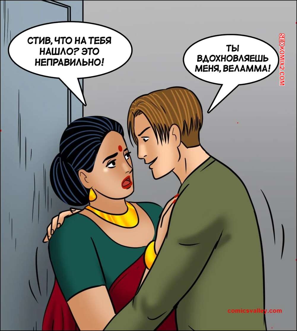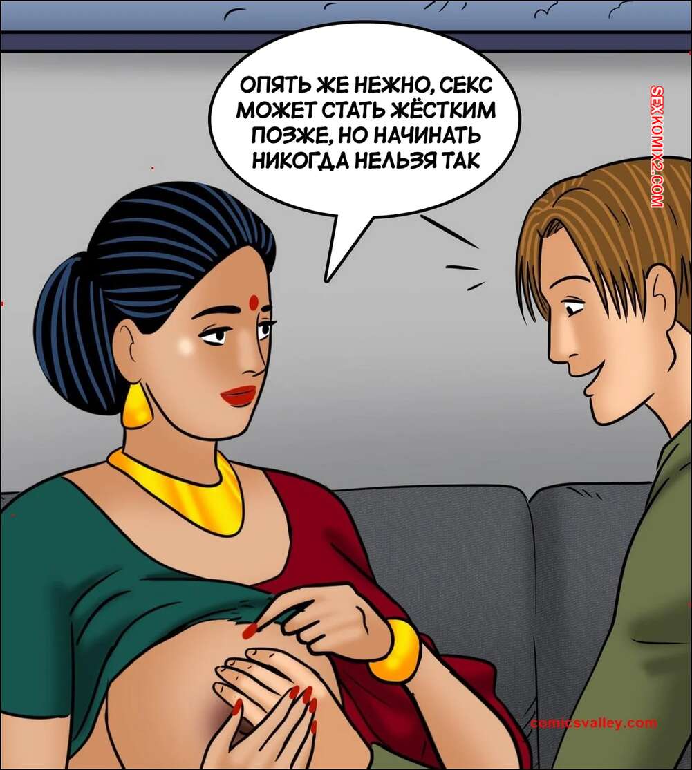 Порно комикс Веламма. Часть 110. Velamma. Velamma Красотка Веламма уединилась в спальне с молодым парнем, желая пошалить. Она разделась и встала на колени, чтобы отсосать член паренька, после чего раздвинула ножки и дала себя выебать.