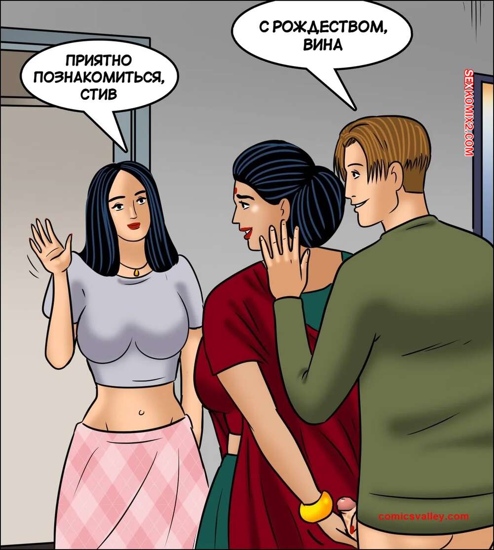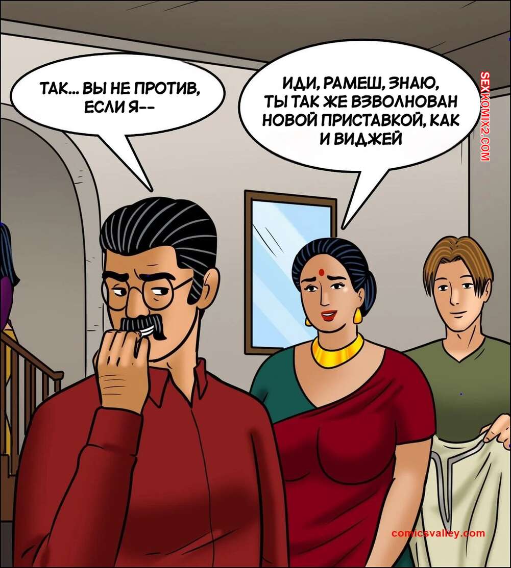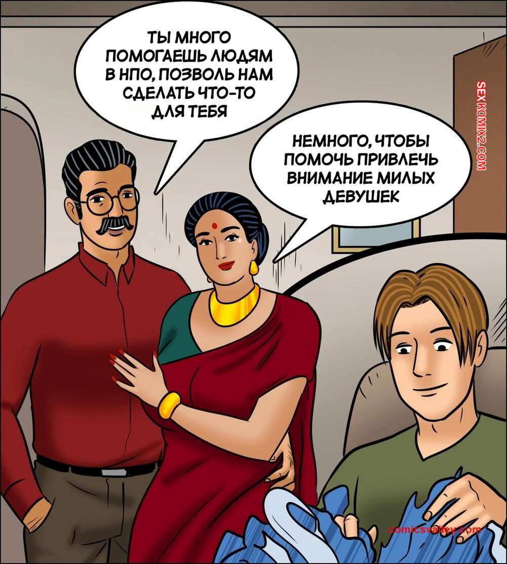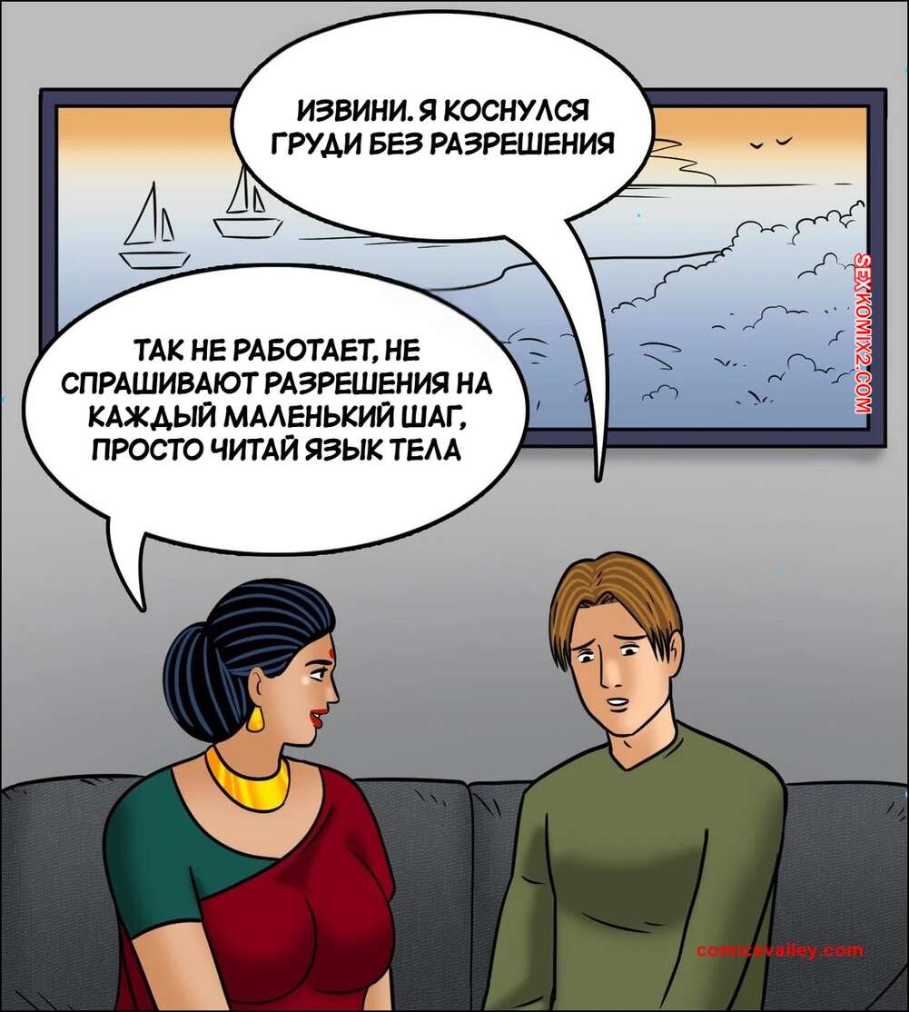 Порно комикс Веламма. Часть 110. Velamma. Velamma Красотка Веламма уединилась в спальне с молодым парнем, желая пошалить. Она разделась и встала на колени, чтобы отсосать член паренька, после чего раздвинула ножки и дала себя выебать.