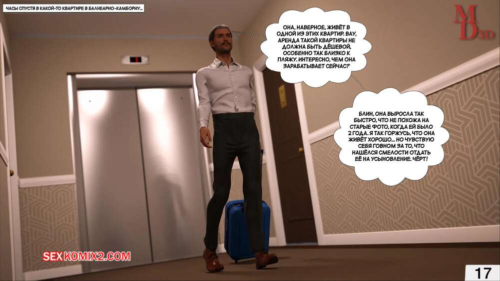 Порно комикс Аморальные искушения. Часть 1. Immoral Temptations. MagicDragon3D. Спустя много лет мужик решил встретиться со своей уже взрослой дочерью. Красотка приняла отца и накормила его, после чего он пошел принять душ после полета. Девушка принесла ему полотенце, но он случайно уперся в нее своим членом.