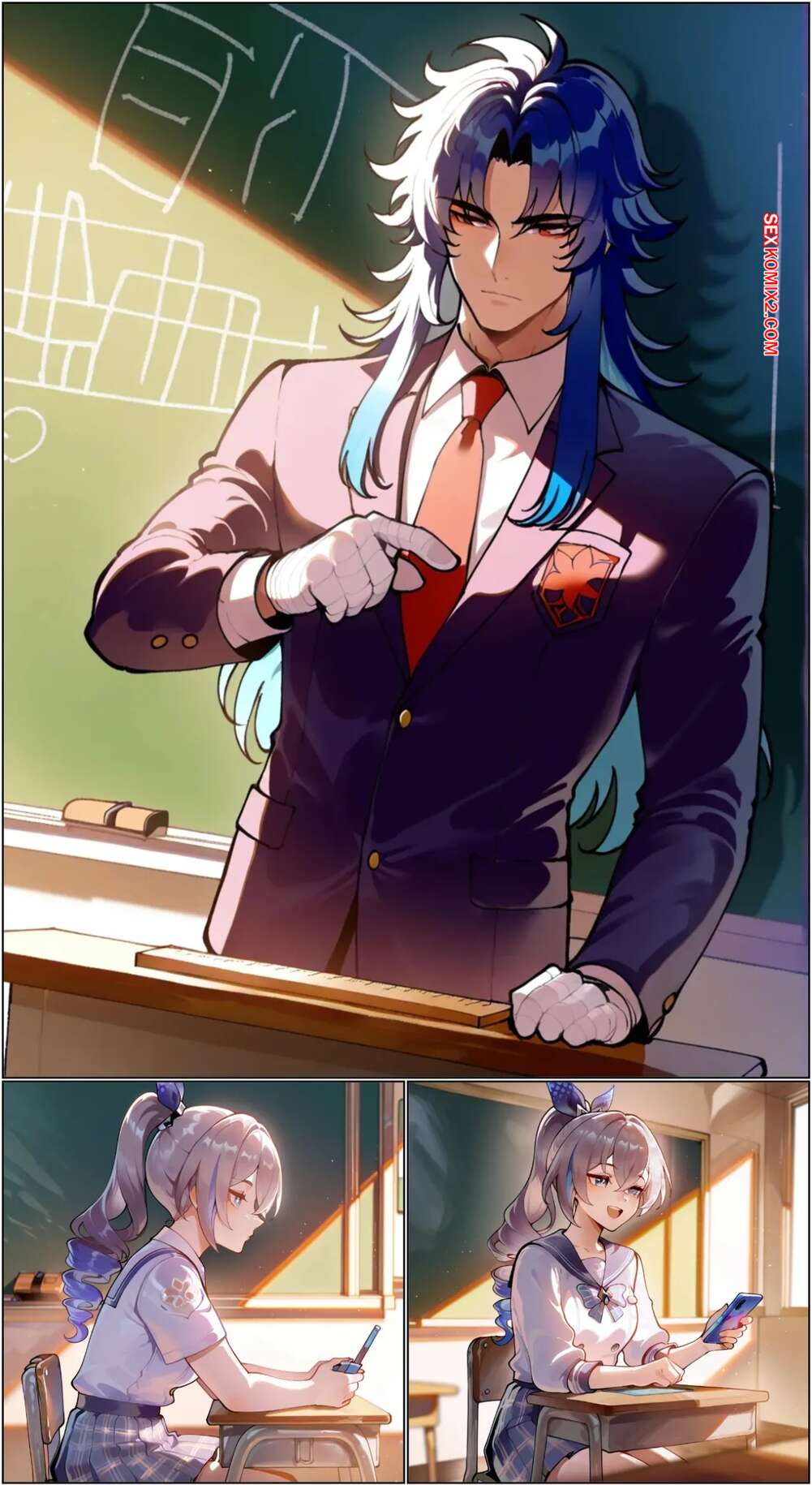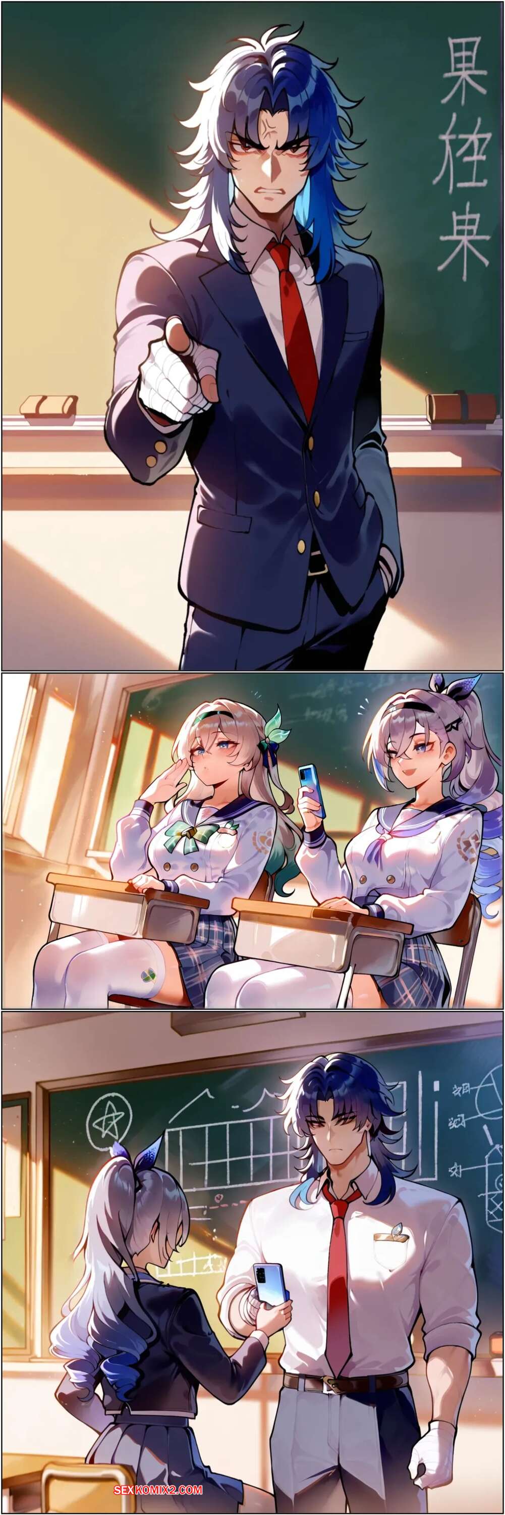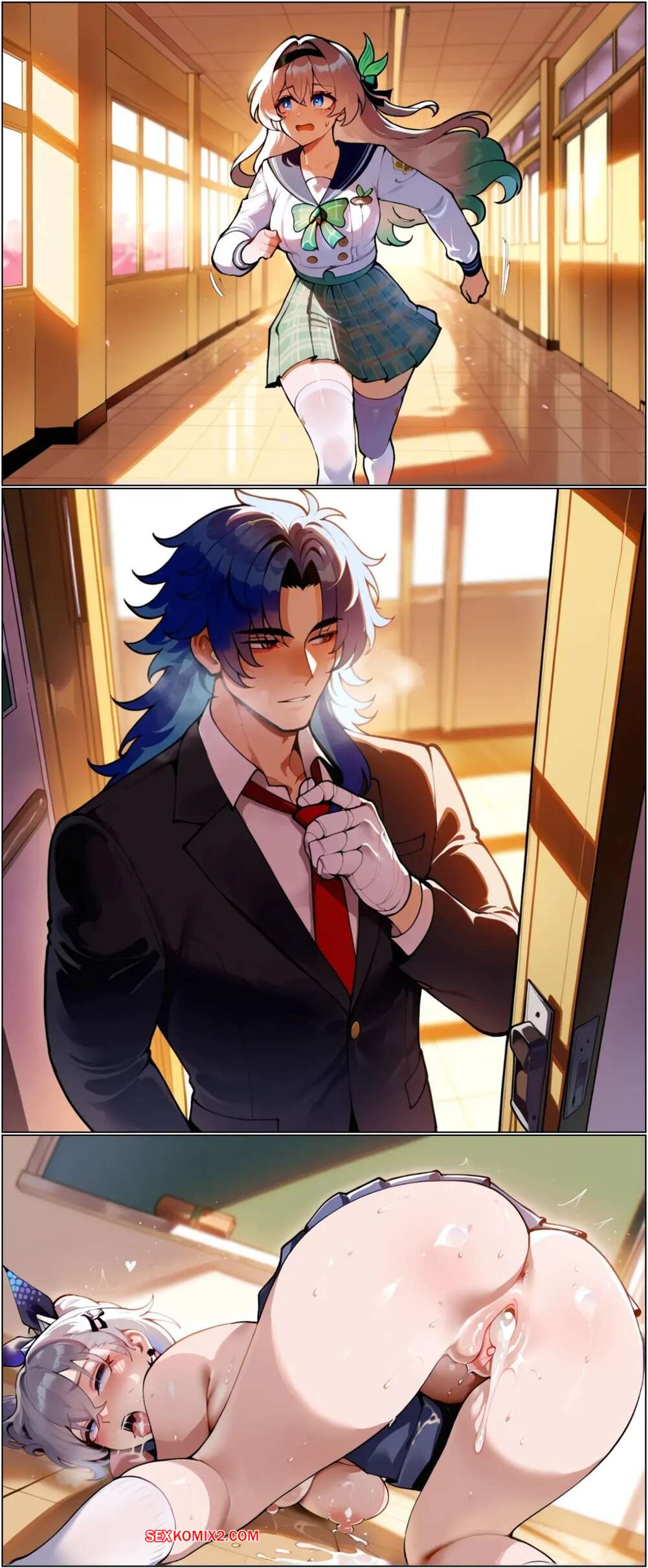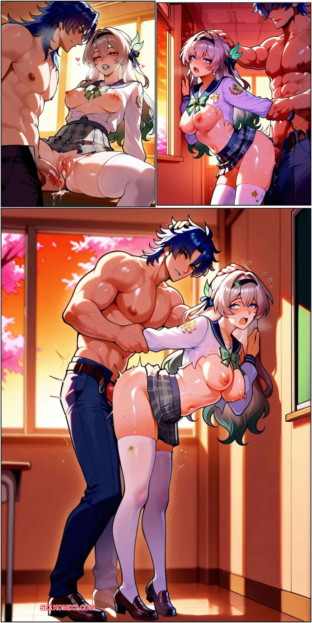 Порно комикс Catching a Firefly. Honkai Star Rail. Aesaro14 Парень соблазнил горячую брюнетку, желая с ней пошалить в классе. Она раздвинула ножки и дала парню себя выебать. Блондиночка стала свидетелем этого и стала сосать хуй парня, после чего дала выебать и себя.