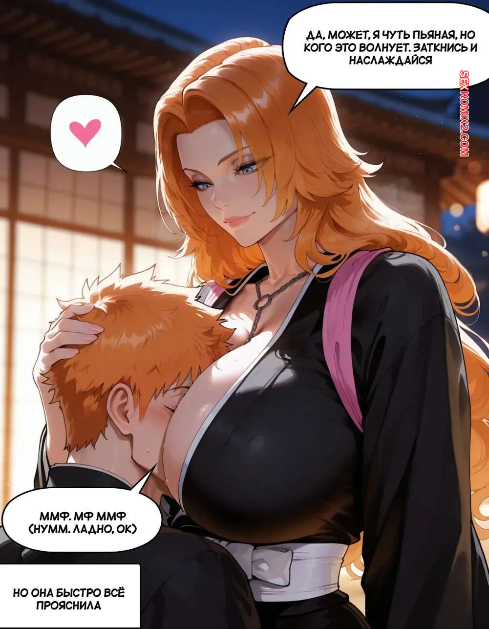 Порно комикс Bleach. Рангику трахает Ичиго по спору. Rangiku fucks Ichigo on a bet. Slaughterbug.