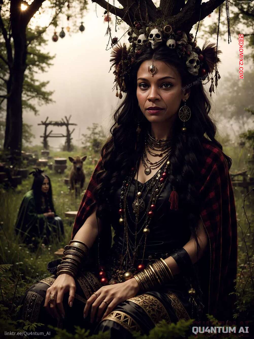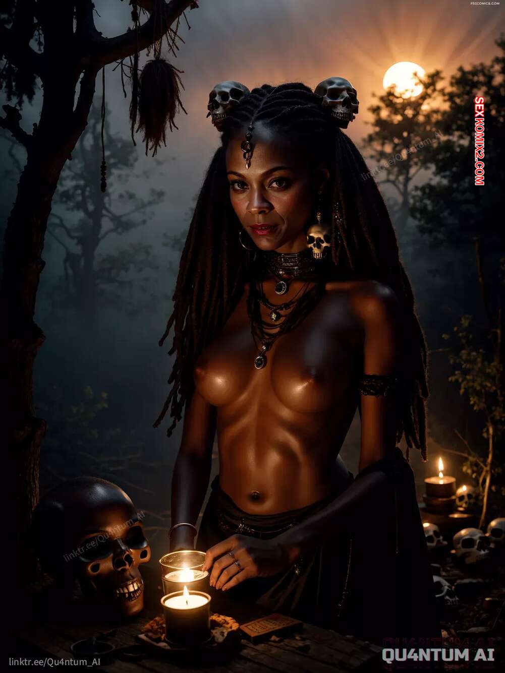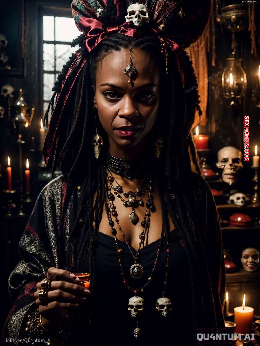 Порно комикс Zoe Saldana. Voodoo Priestess Halloween Horror Dark Magic. QuantumAI Сборник ИИ артов с горячей красоткой Зои Салдана в соблазнительном наряде. Красотка демонстрирует свои аппетитные формы и получает от этого невероятное удовольствие.