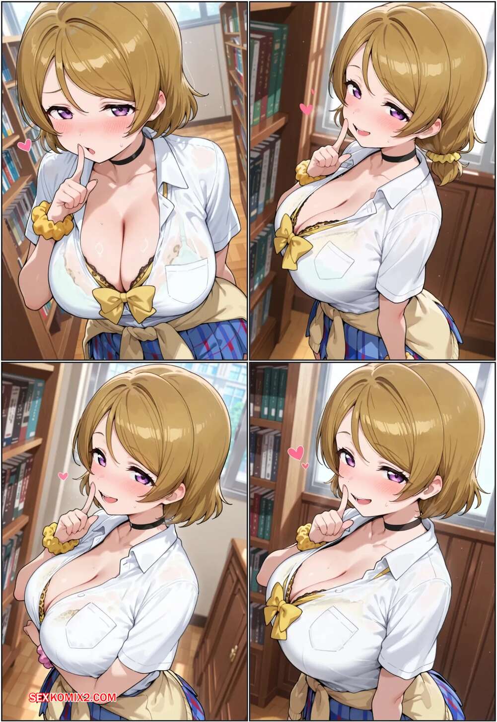 Порно комикс Hanayo Koizumi Блондиночка заигрывает с парнем в библиотеке, желая повеселиться. Она встала на колени и отсосала большой хуй парня, после чего раздвинула ножки и дала себя выебать в пизду и задницу.