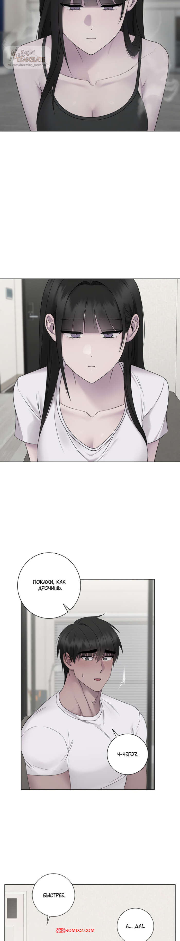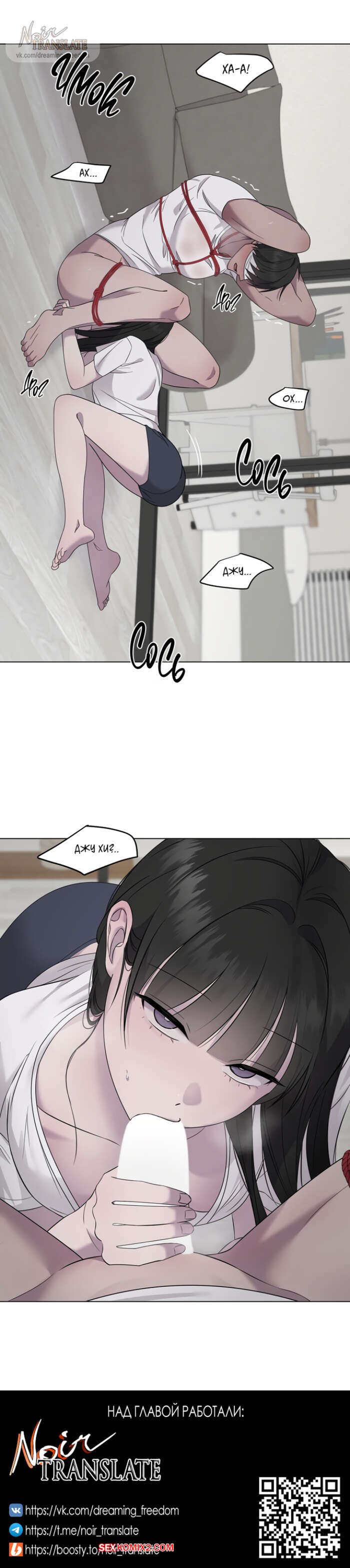 Порно комикс Хозяйка Джи У. Часть 22 и 23 и 24. jiuui ju in Горячая брюнетка поняла, что нравится парню, и пошла к нему в комнату, чтобы сделать приятно. Девушка достала хуй парня и стала дрочить ему, после чего связала, чтобы отсосать член парня и трахнуться.