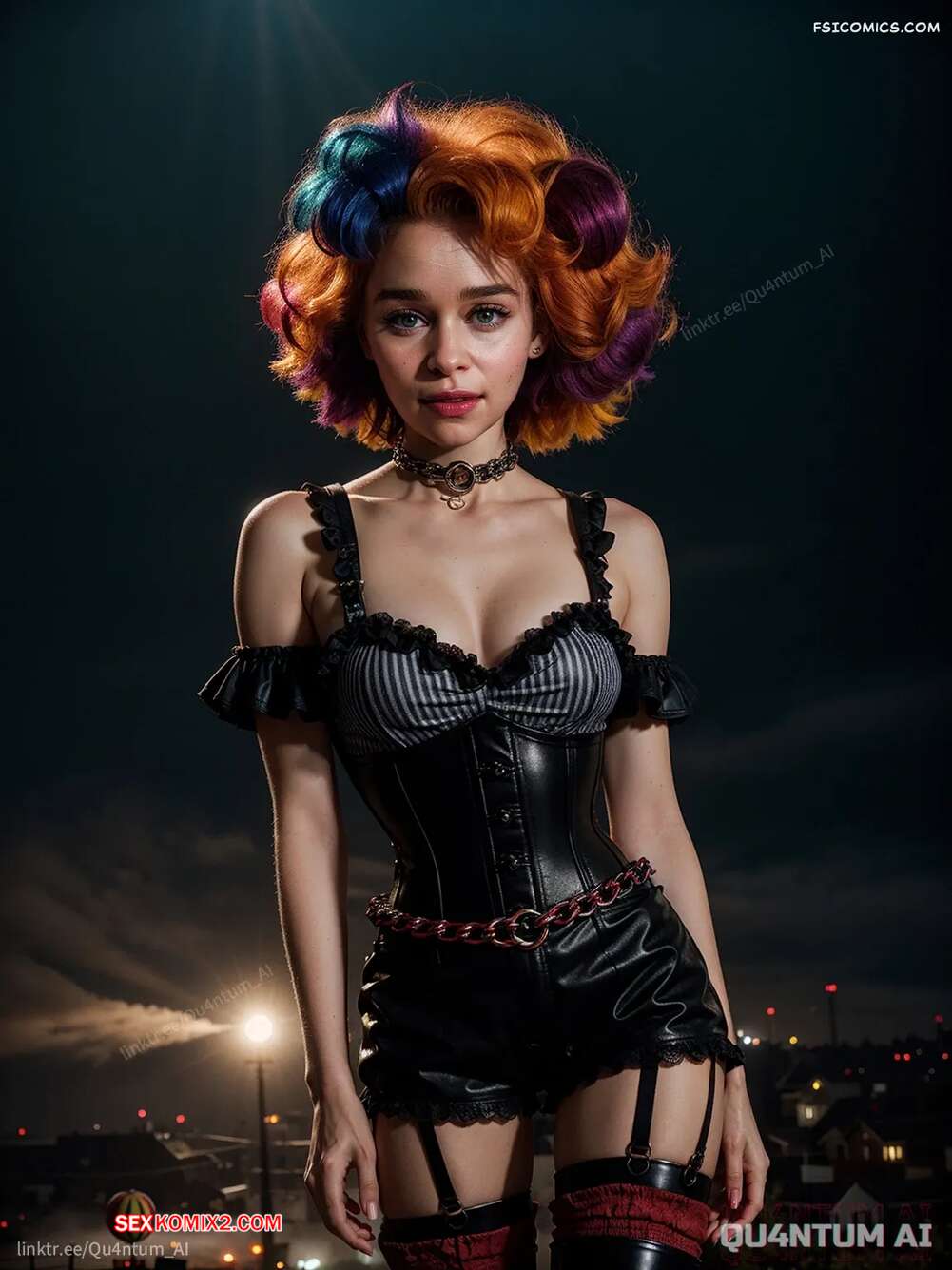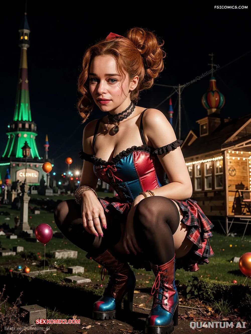 Порно комикс Emilia Clarke. Halloween Creepy Clown Cosplay. QuantumAI Сборник ИИ артов с горячей красоткой Эмилией Кларк. Девушка примеряет на себя различные сексуальные наряды, которые помогают ей во всей красе показать свои аппетитные формы.