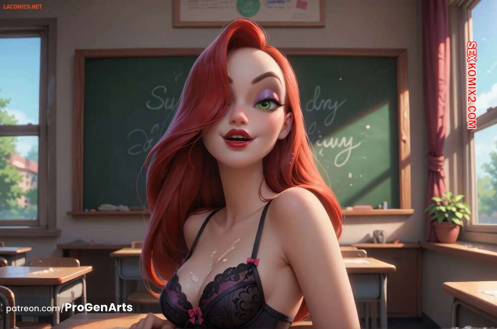 Порно комикс Jessica Rabbit. as Teacher. ProGenArts Джессика Рэббит работает училкой в школе и оставила парня после уроков, чтобы повеселиться. Сучка встала на колени и отсосала хуй ученика, после чего дала ему себя выебать.