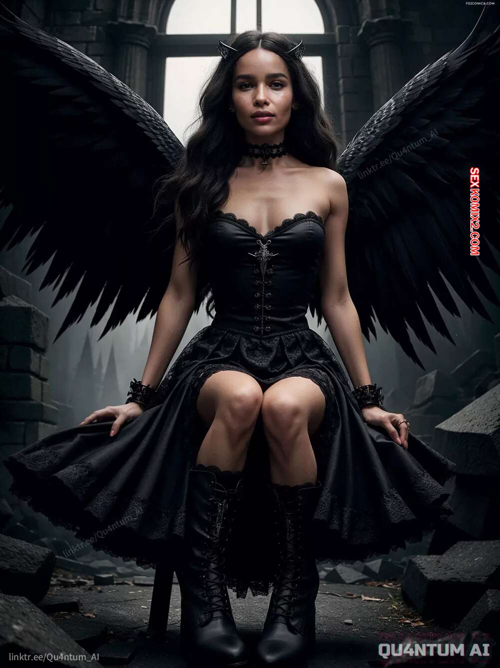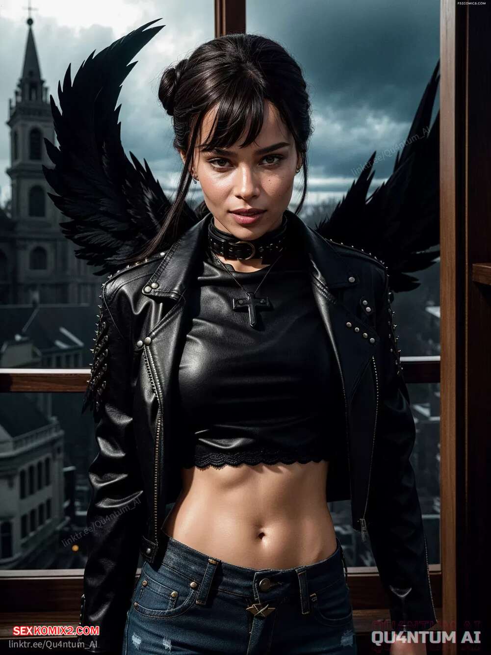 Порно комикс Zoe Kravitz. Dark Angel Wings Horror. QuantumAI Сборник ИИ артов с горячей брюнеткой Зои Кравиц. Она предстает в образе темного ангела с крыльями и с удовольствием выставляет напоказ свои большие сиськи и сочную попку.