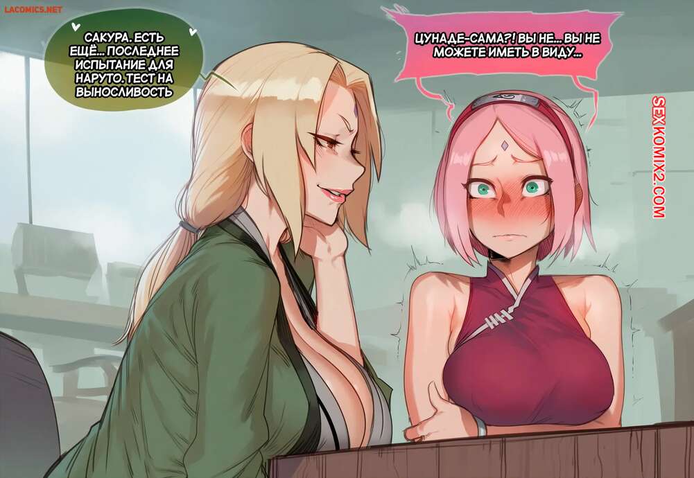 Порно комикс Наруто. Тест на выносливость. Stamina Test. Hoorpy Цунаде и Сакура решила проверить выносливость нового парня. Красотка разделись перед Наруто и стали сосать его большой член, после чего раздвинули ножки и дали себя выебать во все дырочки.