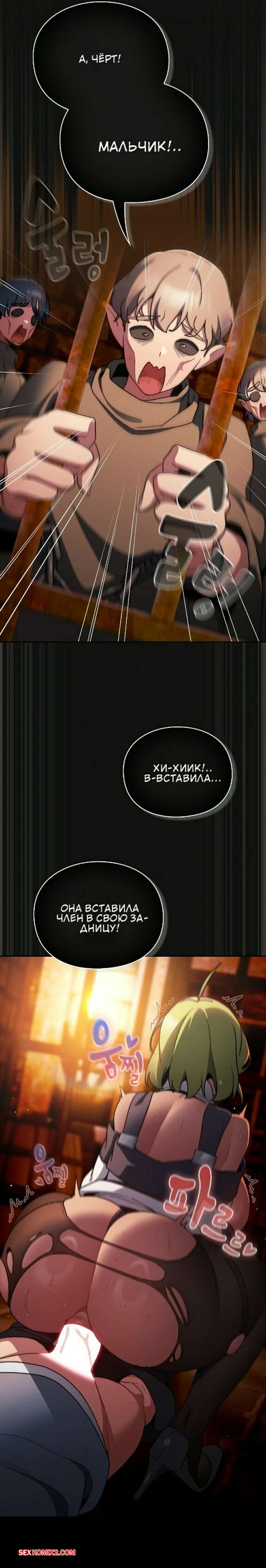 Порно комикс Перенестись в иной мир и стать его спасителем. Часть 7 и 8 и 9 Горячая блондинка пришла в темницу к парню, желая пошалить. Она оголила сиськи и вызвала у парня стояк, после чего оседлала его член и дала выебать свою пизденку.