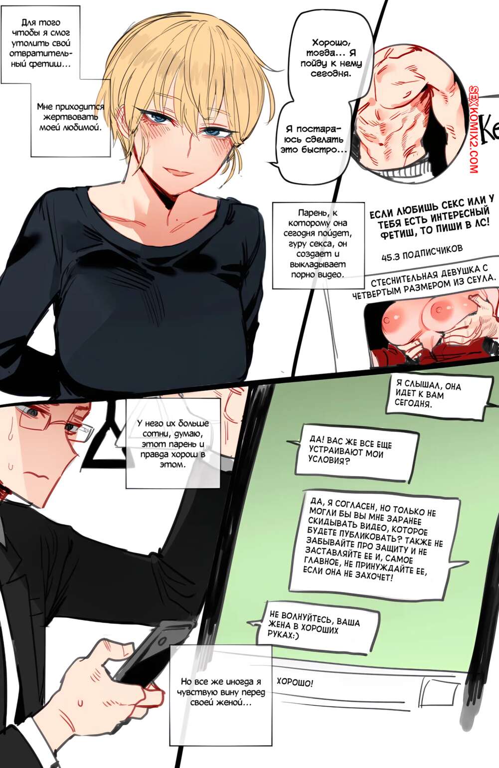 Порно комикс Верная жена. Loyal Wife. Ratatatat74 У парня много странных фетишей и его жена согласна их исполнять. Красотка раздевается перед любимым и ласкает его член, после чего раздвигает ножки, чтобы трахнуться.