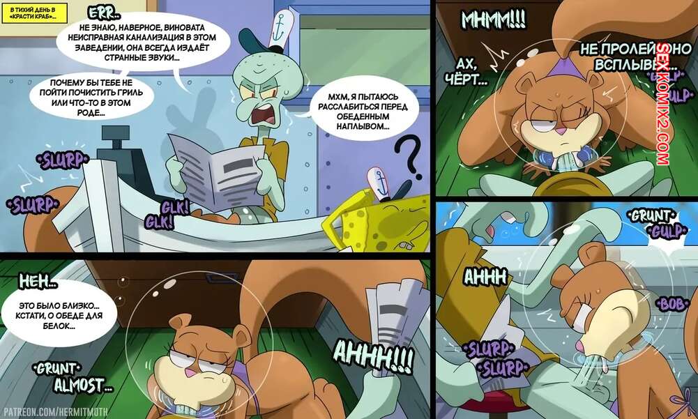 Порно комикс Губка Боб. Сэнди Чикс. Three Sandy Cheeks Oneshots. Hermit Moth. У ворчуна Сквидварда классный член, перед которым не может устоять Сэнди. Девушка встает на колени и хорошенько у него отсасывает, после чего раздвигает ножки и дает себя выебать.
