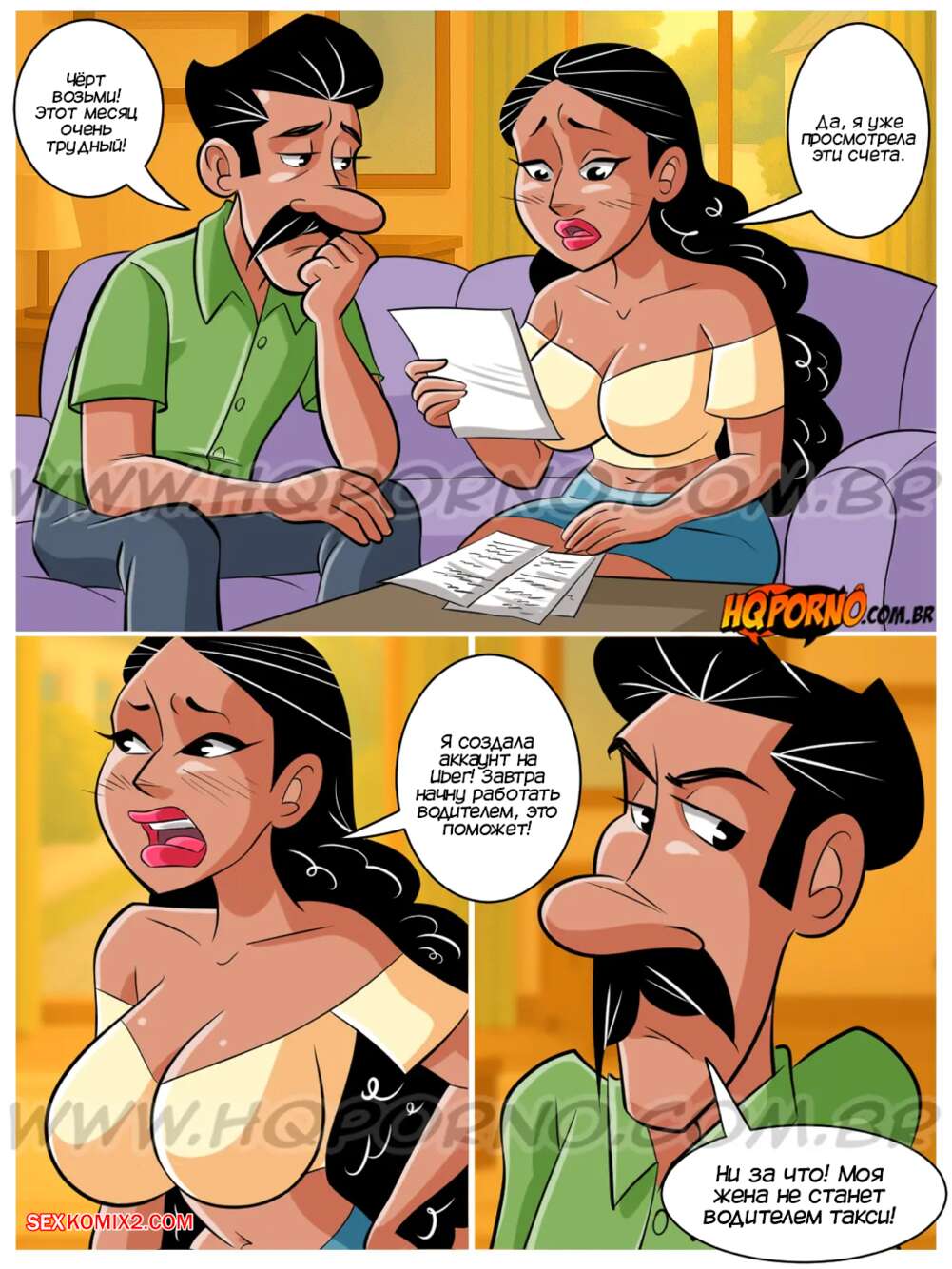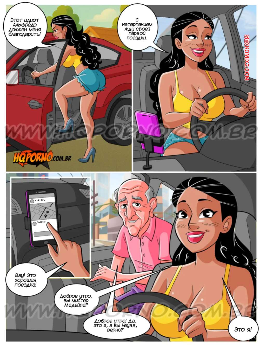 Порно комикс Гребаная семейка. Часть 11. Familia do caralho. HQPorno Неуза устроилась в такси, чтобы поомчь мужу со счетами. Красотка подвозила старика и у него встал член при виде красотки. Он стал дрочить, ведь если не кончил, то может погибнуть. Сучка не оставила старика в беде и помогла ему испытать оргазм.