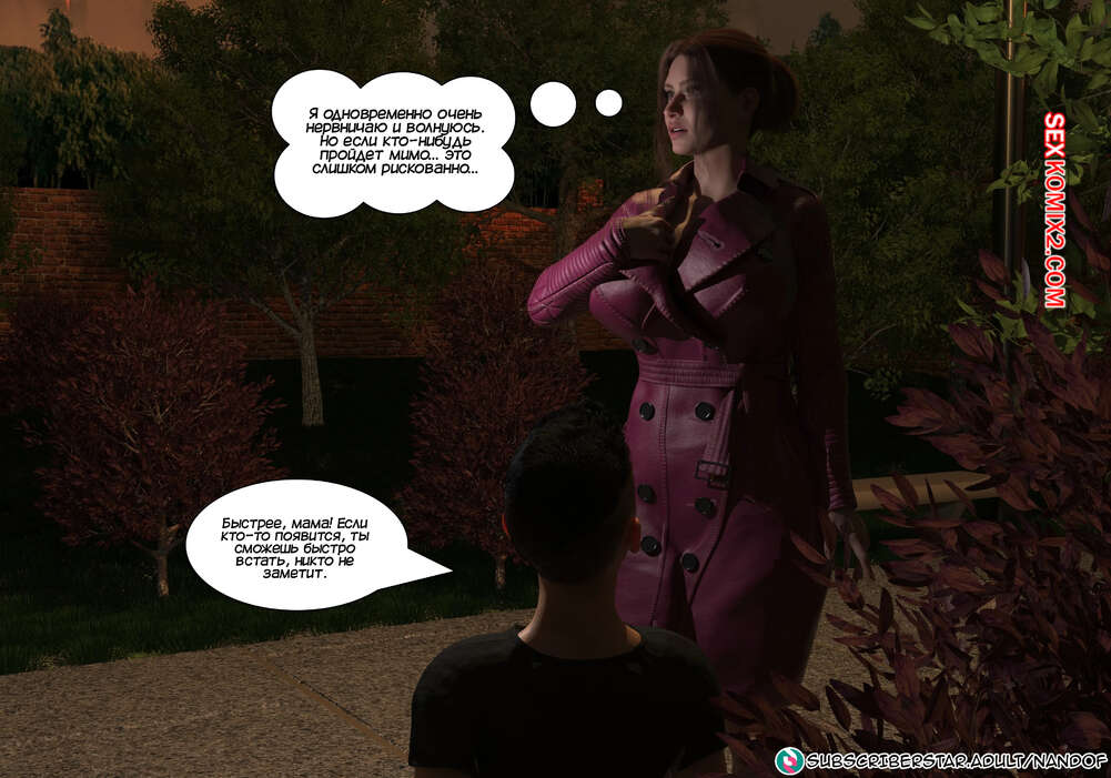 Порно комикс Моя мама порнозвезда. Часть 9. My Mom is My PornStar. NandoF Фанаты Лукаса и Глории просят от них более разнообразный контент, поэтому парень предлагает мамке устроить секс в публичном месте. Красотка категорически отказывается, но все же идет на поводу у сына.