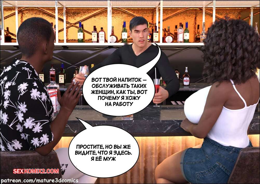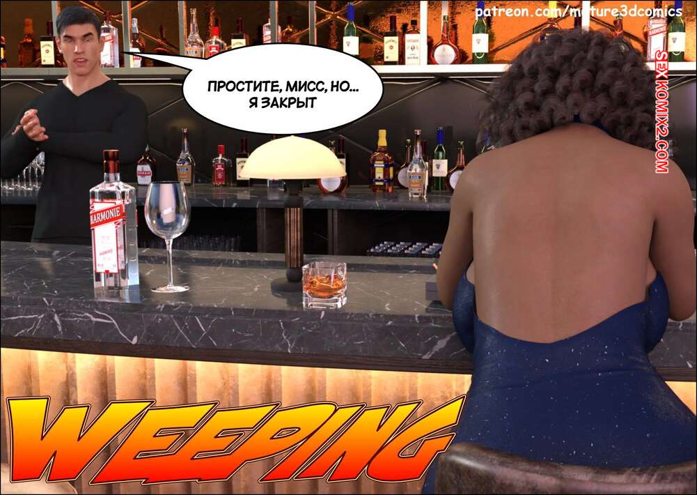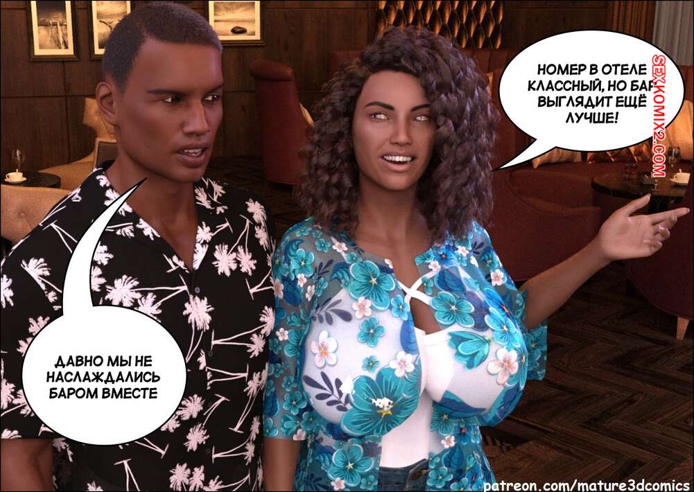 Порно комикс Личные дела. Часть 2. Private Affairs. Mature3DComics Горячая милфа хотела трахаться, но у ее мужа член не встал. Поэтому сучка пошла выпить в бар, после чего стала соблазнять бармена выебать ее пизду в соседнем номере от ее мужа.