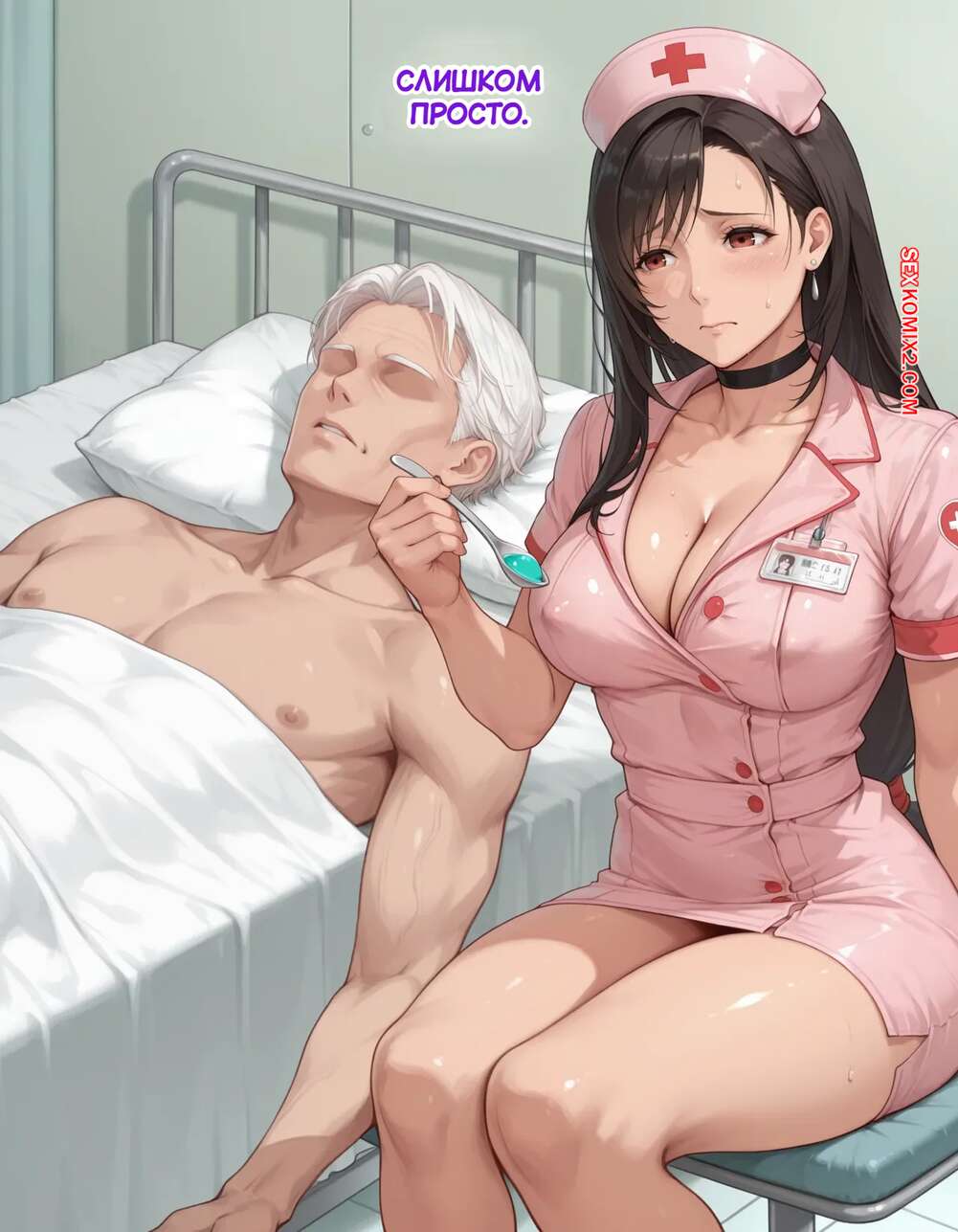 Порно комикс Эксперимент Шинра. Часть 4. The Shinra Experiment. SAX Горячая брюнетка работает медсестрой в больнице и любит делать счастливыми своих пациентов. Красотка раздевается и сосет члены парней, после чего дает им себя выебать в пизду и задницу.