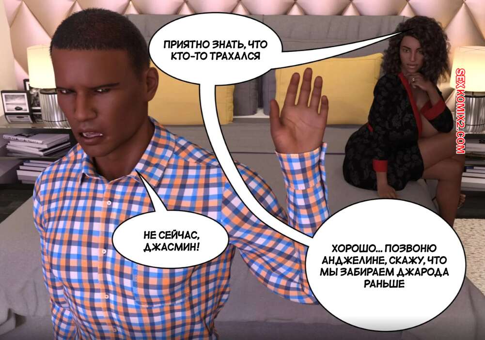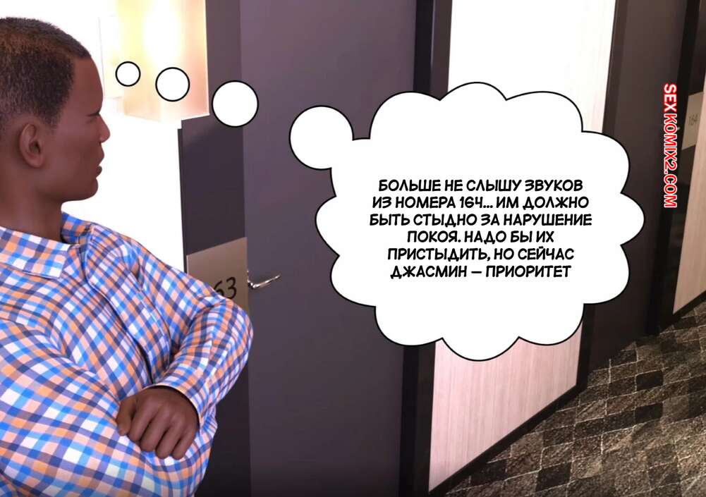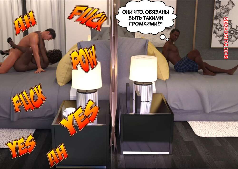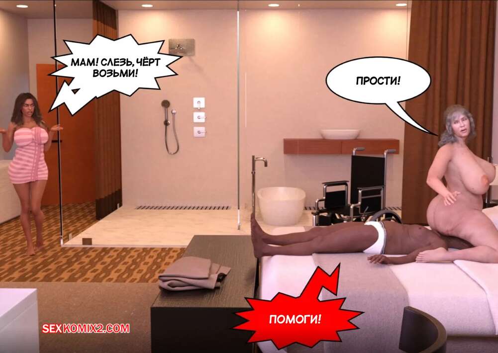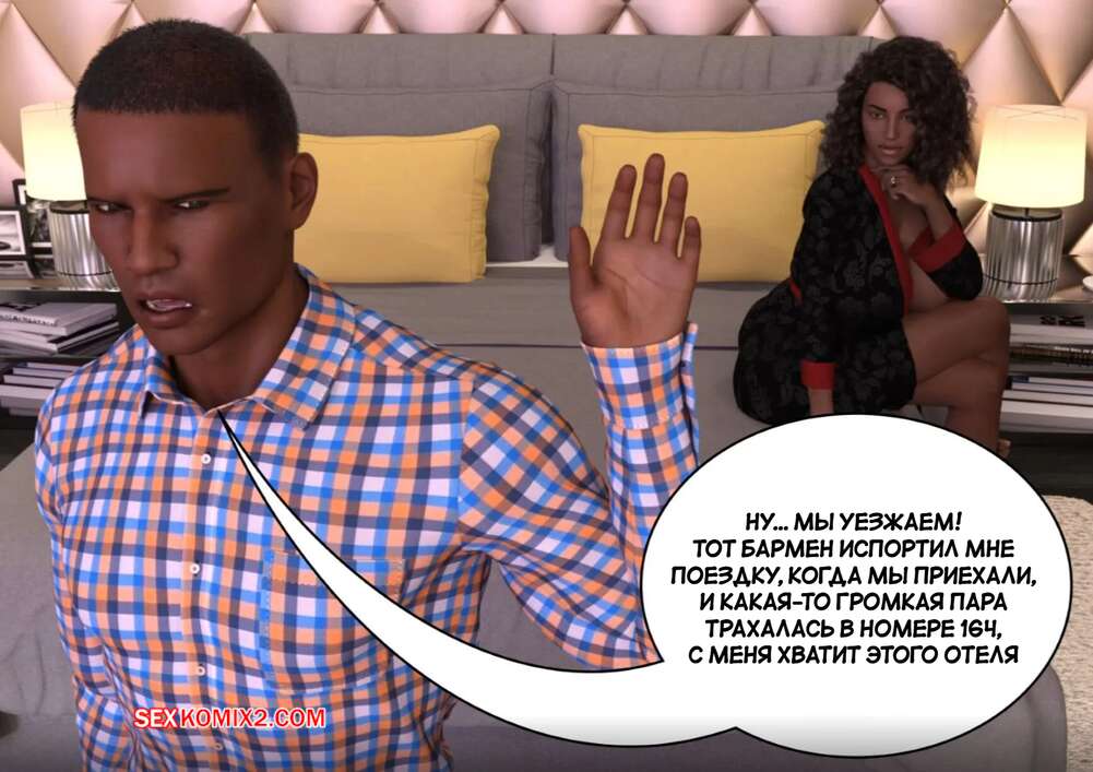 Порно комикс Личные дела. Часть 3. Private Affairs. Mature3DComics Темнокожая милфа уложила парня бармена на кровать и стала его соблазнять на перепихон. Сучка оседлала хуец парня и дала ему себя выебать как следует, чтобы ее муж за стенкой слышал стоны.
