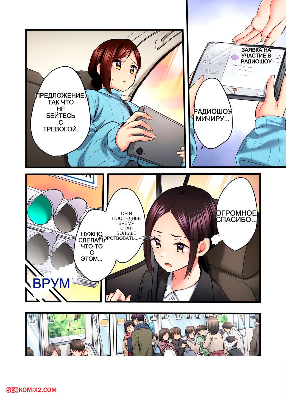Порно комикс Невинная телепевица. Без цензуры. Часть 79 и 80 и 81 Парень с девушкой ехали в переполненном автобусе и он стал тереться членом о попку красотки. Их это так сильно возбудило, поэтому, они поспешили вернуться домой, чтобы заняться сексом.
