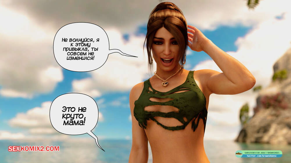 Порно комикс Земля Зверей. Часть 1. The Beast Land. Brown Shoes Горячая милфа и ее сын потерпели крушение и оказались на острове. Парень отправился на поиски еды и нашел светящееся яблоко, после чего у него и его мамки изменились тела.