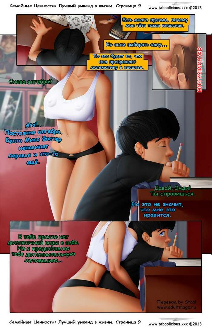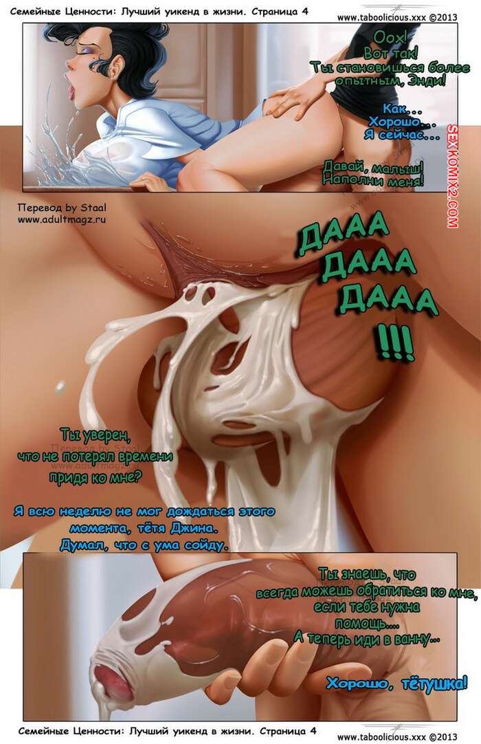 Порно комикс Семейные ценности. Часть 1. Taboolicious Юный парень остался гостить у своей горячей тети и сразу стал продумывать план, как бы ее трахнуть. У него быстро все получилось и вскоре сучка стала зависима от члена племянника.