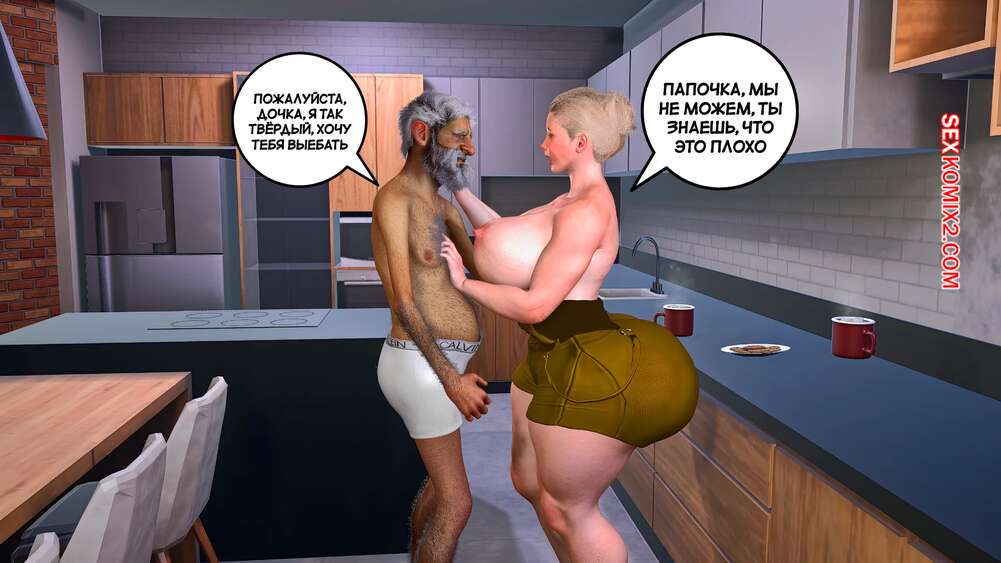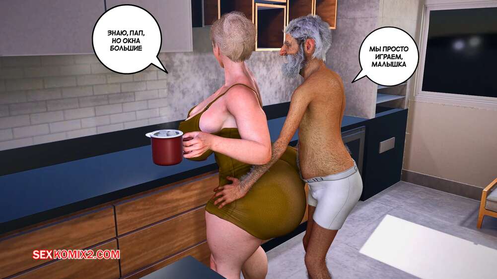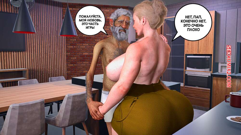Порно комикс Забота о моем отце. Часть 4. Care my father. Bartolito3d for sexkomix2.com Горячая милфа готовила завтрак отцу, но он начал обнимать ее сзади, возбуждая красотку. Она разделась и встала на колени, чтобы взять член старика в ротик.