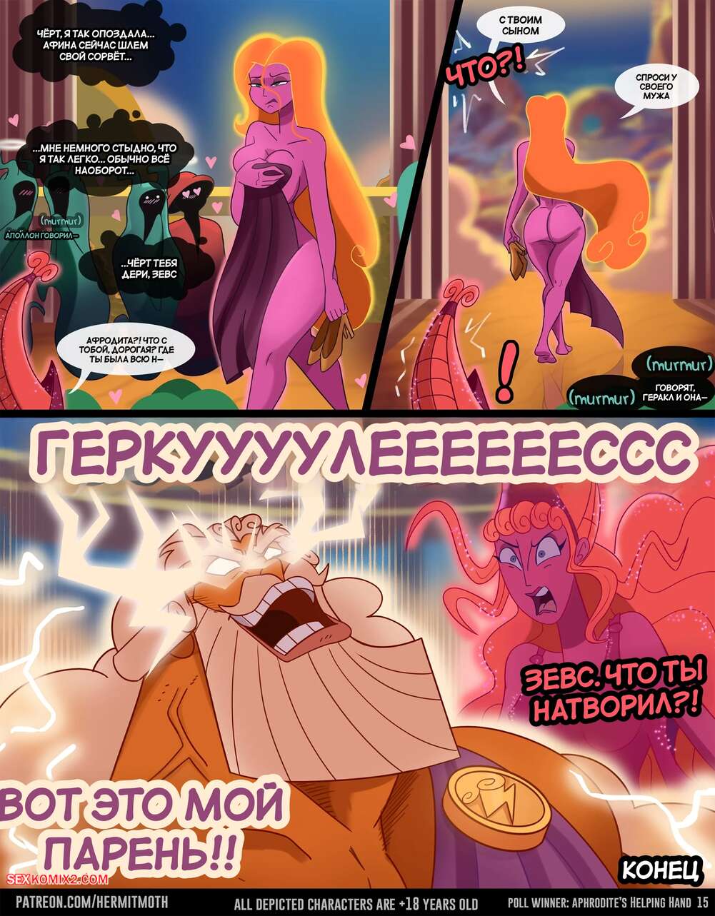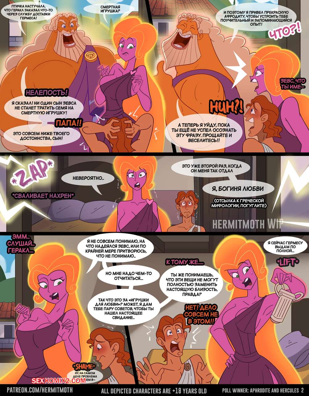 Порно комикс Геркулес. Урок Афродиты. Aphrodites Lesson. HermitMoth. Красотка милфа спалила Геркулеса со стояком и решила ему помочь. Сучка скинула одежды и выставила напоказ свои аппетитные формы, после чего стала дрочить хуй парня, готовя его к проникновению.