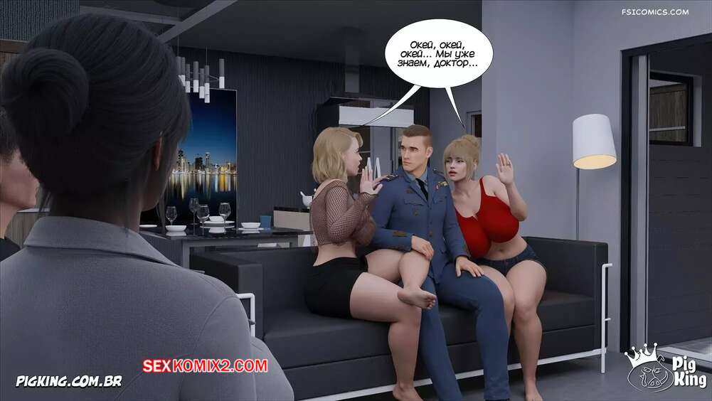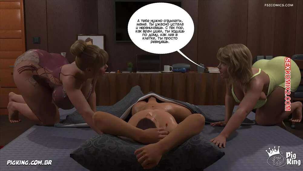 Порно комикс Семейка грехов. Часть 79. Family Sins. CrazyDad3D Брайан вернулся домой и мама с сестрой ждут наступления ночи, чтобы его навестить. Красотки вместе сосут большой и твердый член парня, после чего Жанин его оседлала, чтобы трахнуться.