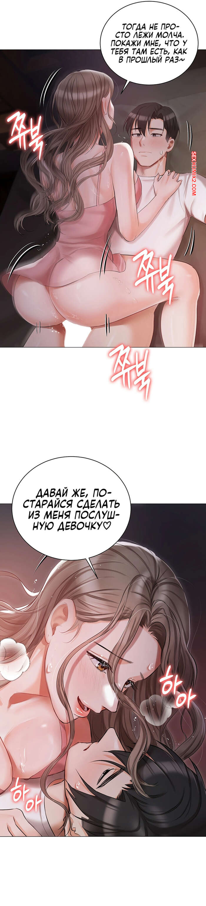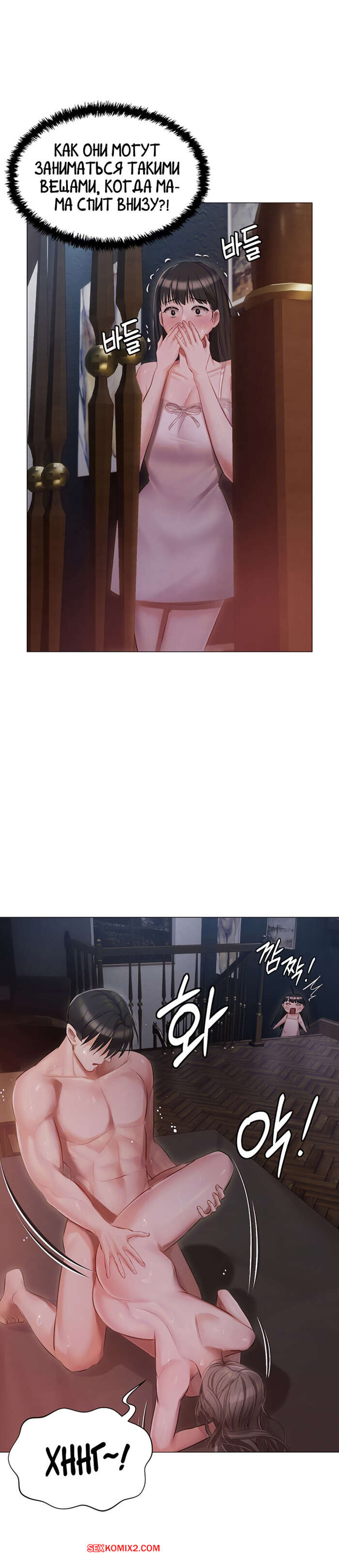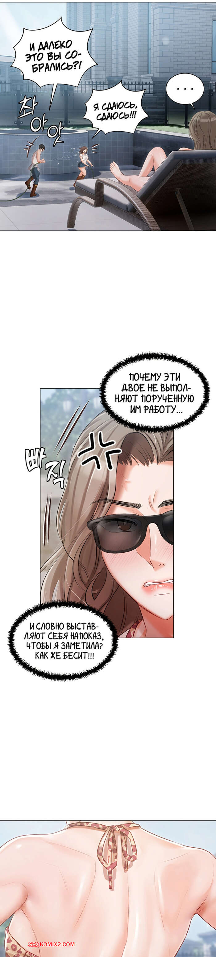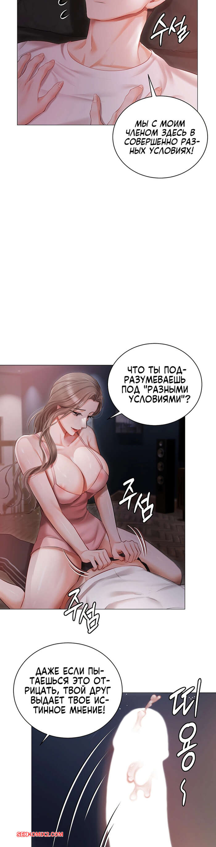 Порно комикс Резиденция Хенджон. Часть 13 и 14 и 15. hyeonjeong ui jeotaeg Горячая брюнетка в сексуальной ночнушке заигрывает с парнем, желая повеселиться. Она повалила его на землю и оседлала его член, после чего стала на нем скакать.