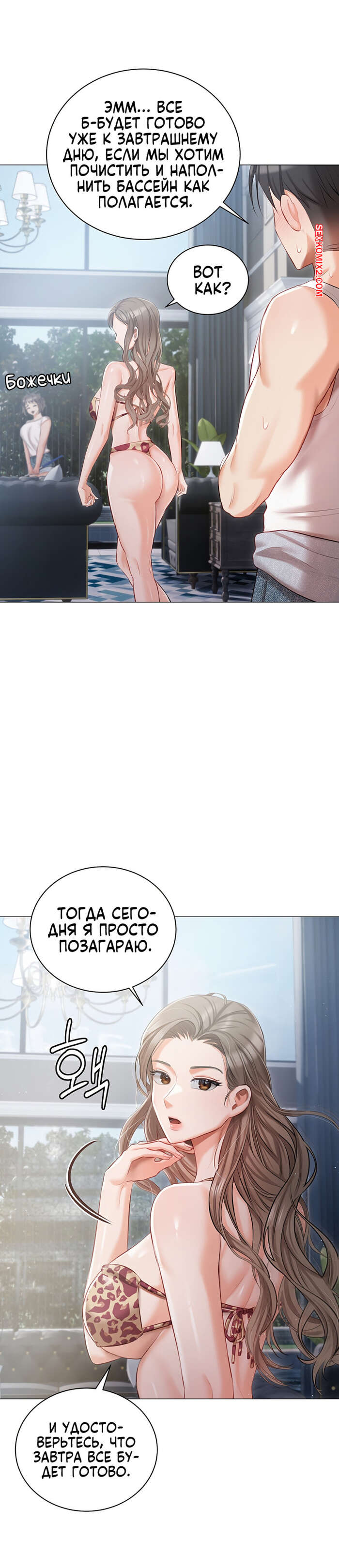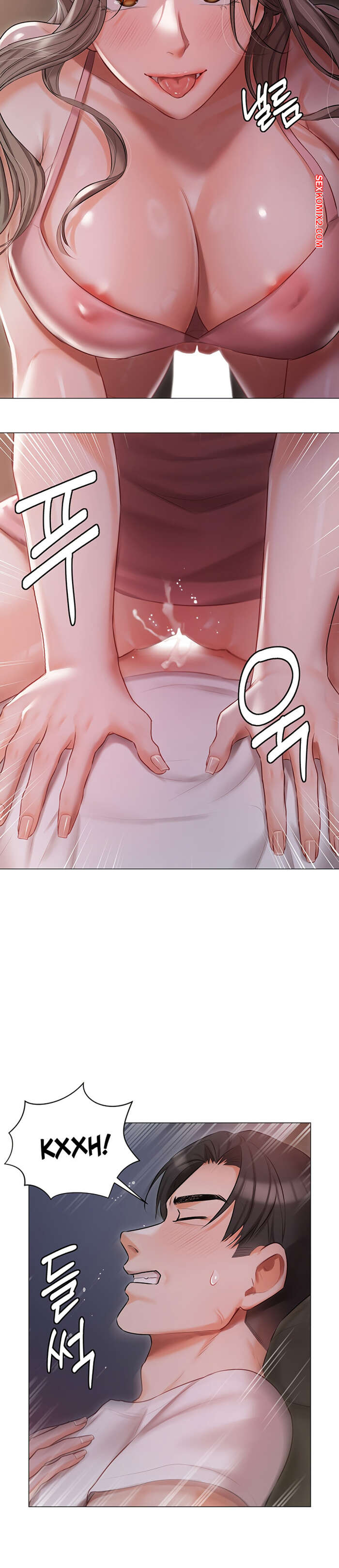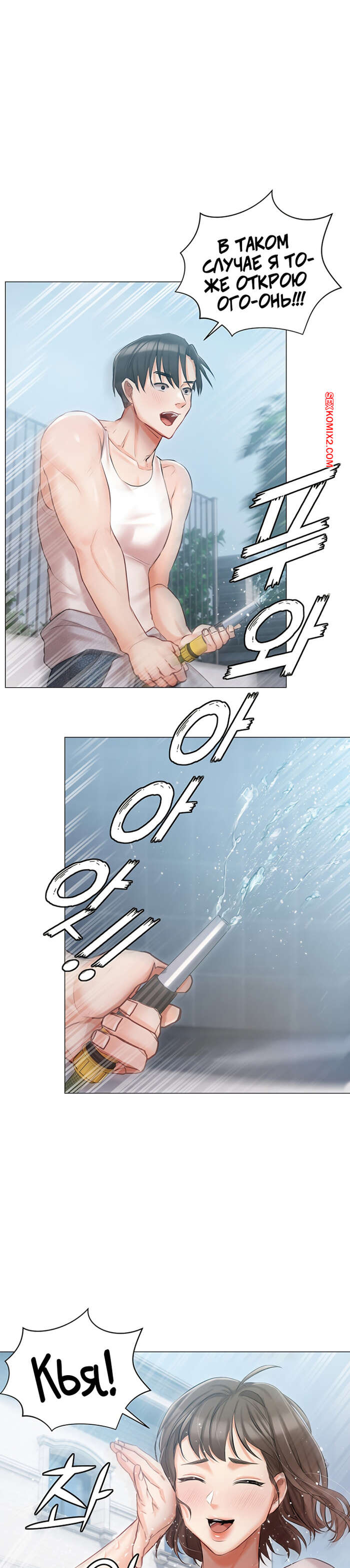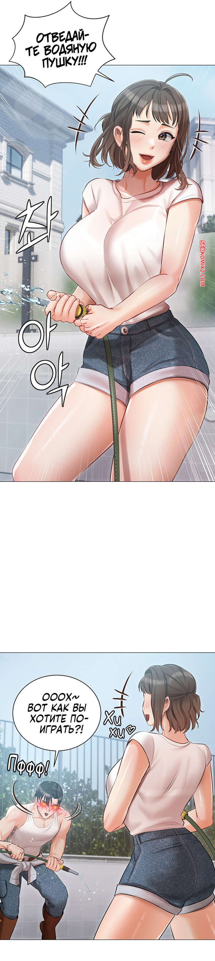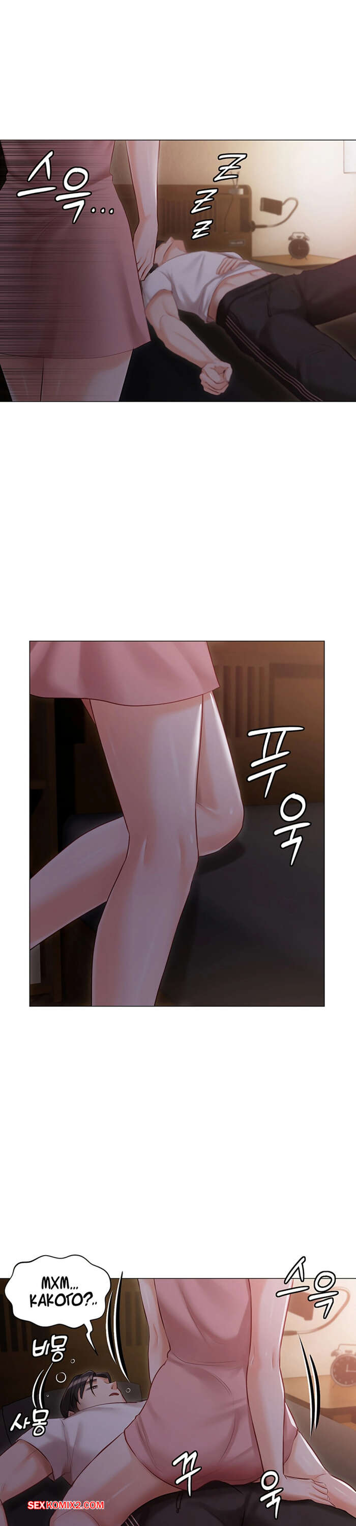 Порно комикс Резиденция Хенджон. Часть 13 и 14 и 15. hyeonjeong ui jeotaeg Горячая брюнетка в сексуальной ночнушке заигрывает с парнем, желая повеселиться. Она повалила его на землю и оседлала его член, после чего стала на нем скакать.