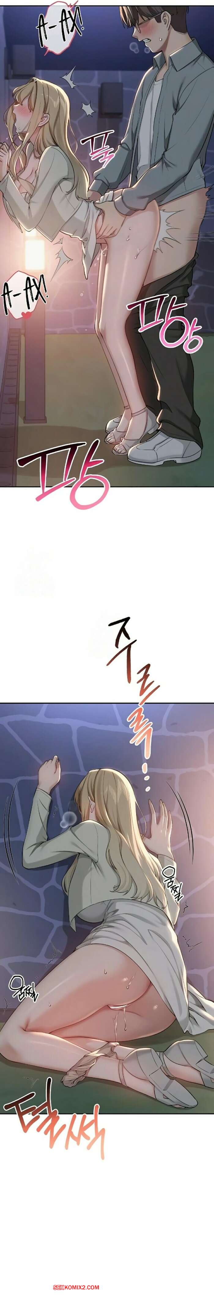 Порно комикс Похотливые девушки университета. Часть 13 и 14 и 15 Блондиночка отсосала член парня в переулке и хочет большего. Она задарала юбочку и встала раком, позволив парню себя хорошенько оттрахать, а затем кончить ей в ротик.