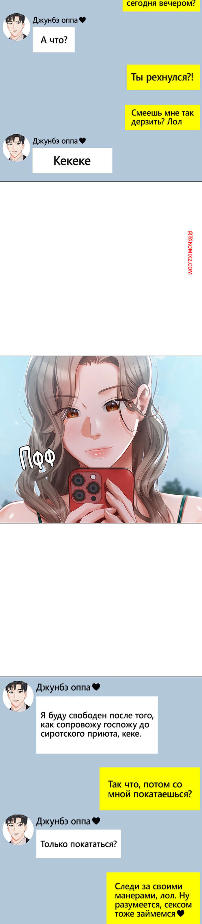 Порно комикс Резиденция Хенджон. Часть 22 и 23 и 24. hyeonjeong ui jeotaeg Парень с девушкой пришли в отель, где красотка разделась и отдалась ему в милость. Чувак возбудил девушку своими ласками, после чего вставил в нее член и хорошенько выебал.