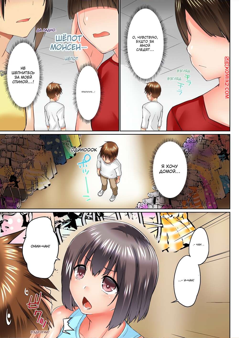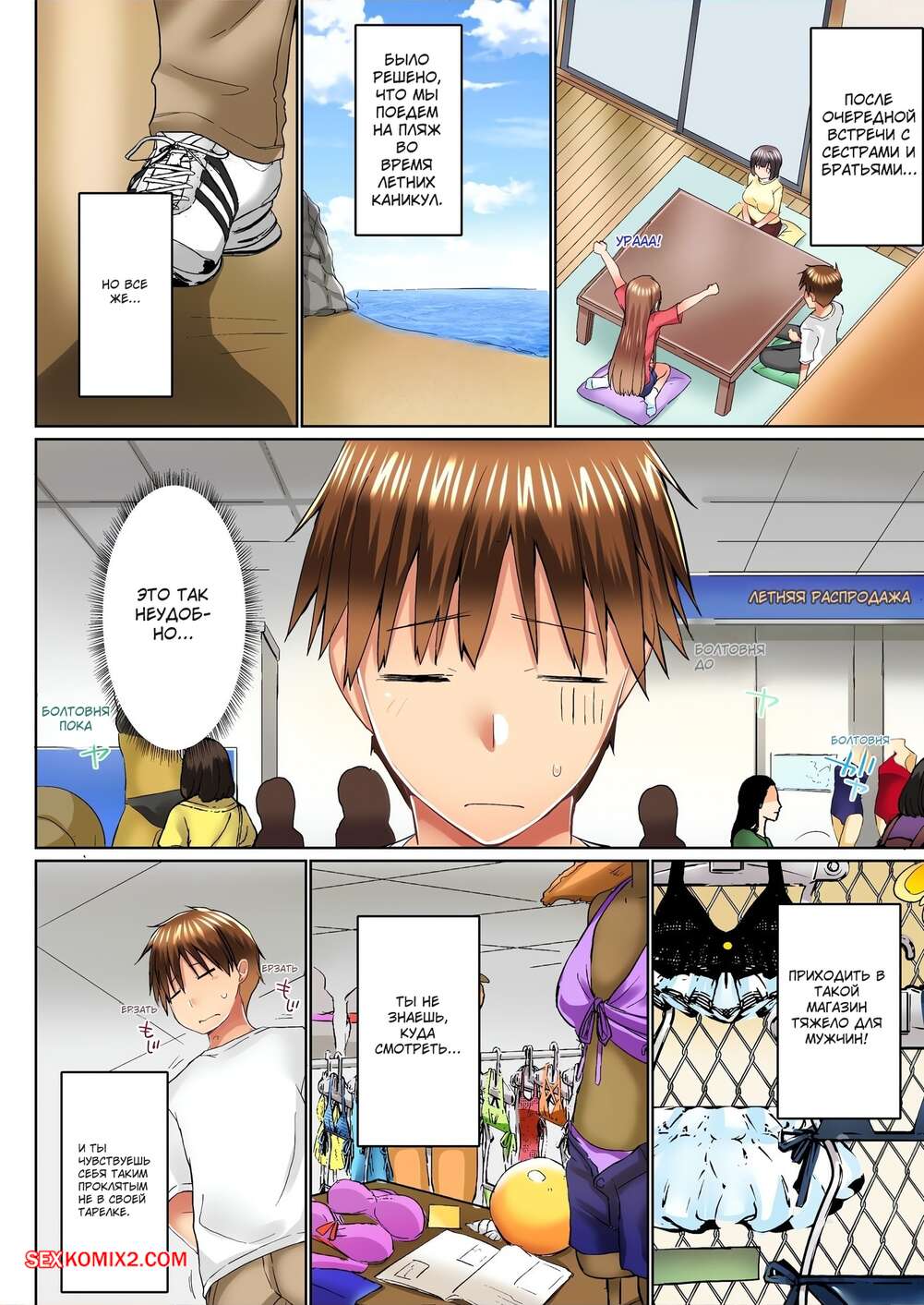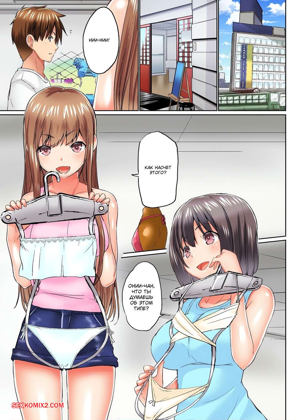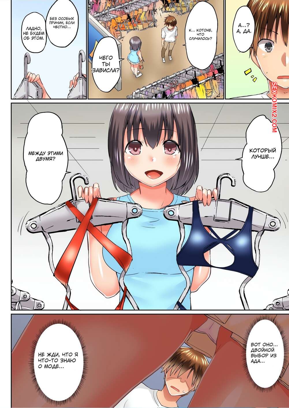 Порно комикс Мой брат присунул мне в ванной. Без цензуры. Часть 52 и 53 и 54. Kaiduka Парень отправился с сестренками в магазин одежды, чтобы выбрать им купальники. Одна из девушка затащила парня к себе в примерочную и стала дрочить сиськами его член, после чего раздвинула ножки и дала себя выебать.