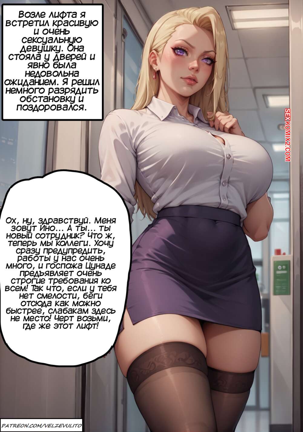 Порно комикс Наруто. Коллеги c Ино. Colleagues with Ino. Velzevulito Парень попал в крупную компанию и в отделе кадров его направили на 15ый этаж. В лифте он застрял с красоткой Ино на час и девушка решила познакомиться с парнем поближе. Сучка встала на колени и отсосала хуй парня, после чего дала ему себя выебать.