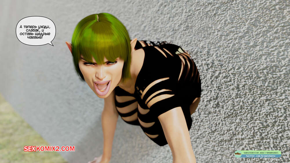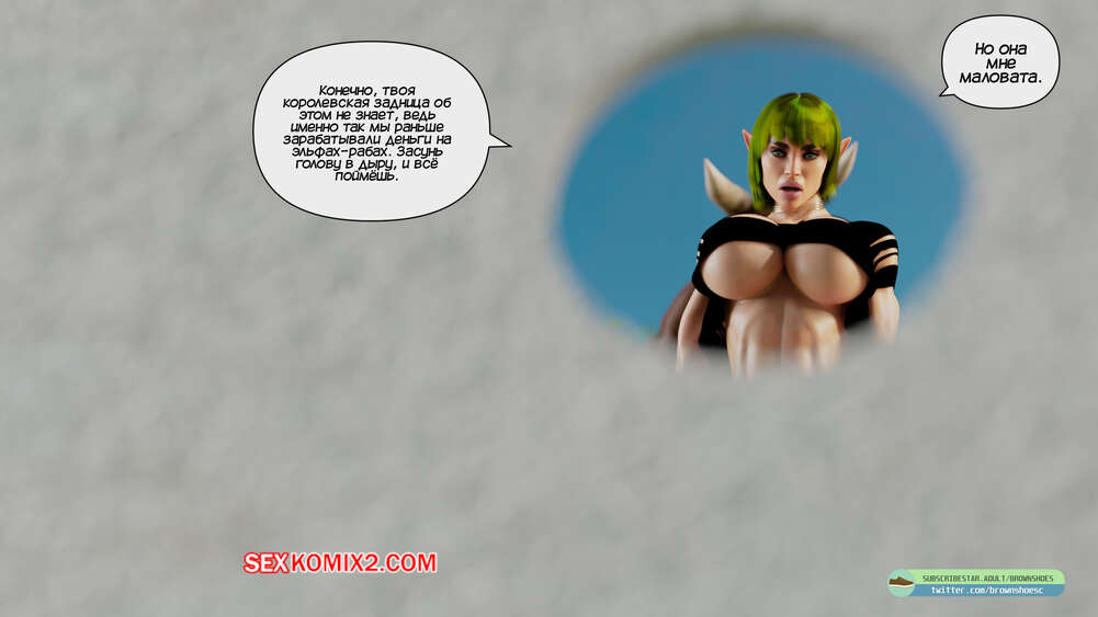 Порно комикс Падение королевы эльфов. Часть 3. The Fall of the Elf Queen. Brown Shoes Королева эльфийка застряла в дыре в стене и оказалась в уязвимом положении. Проходящие мимо парни пользуются такой возможностью и хорошенько трахают задницу и пизду красотки.