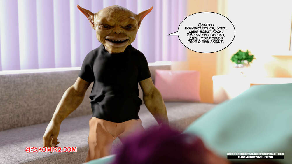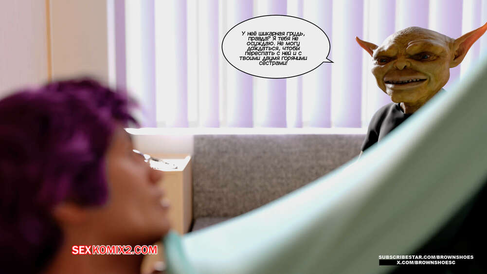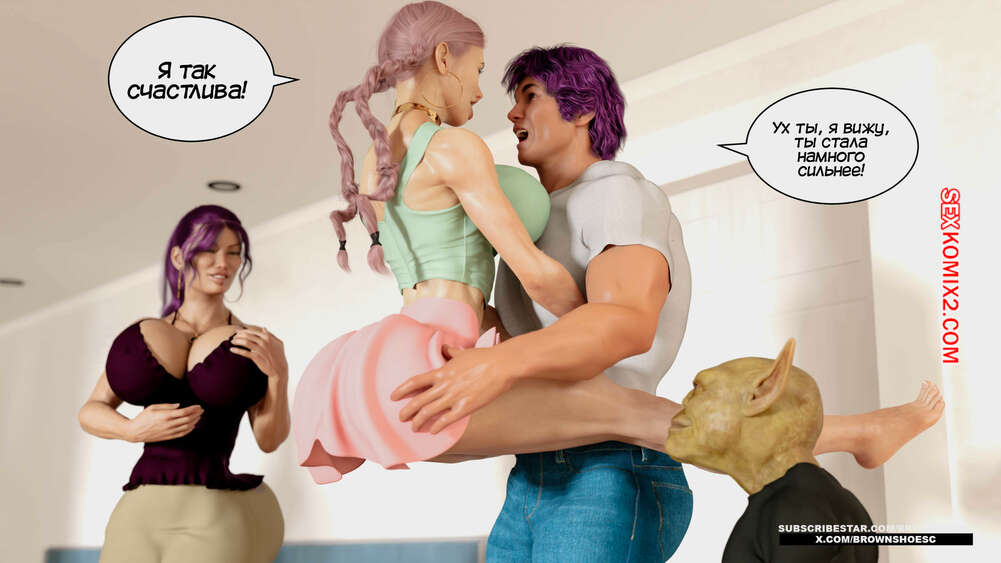 Порно комикс Гоблины, бимбо и боги. Часть 1. Goblins, Bimbos and Gods. Brown Shoes Парень очнулся от комы, чему очень рада была его горячая мамка и не менее горячая сестра. У Дарио часто встает член, поэтому красотки решают ему помочь своими аппетитными телами.
