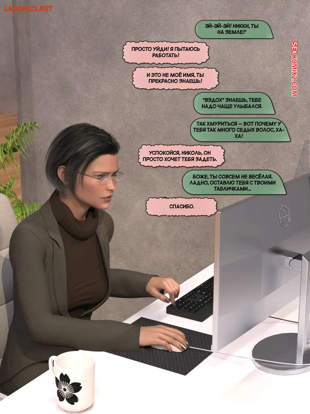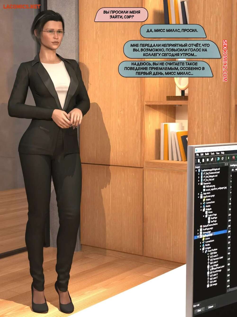 Порно комикс Новое руководство. New Management. H Bof 3DX. Новый начальник застал свою сотрудницу за дрочкой и решил ей помочь. Он приказал красотке раздеться и вставил в нее свой член, чтобы как следует выебать ее пизденку.