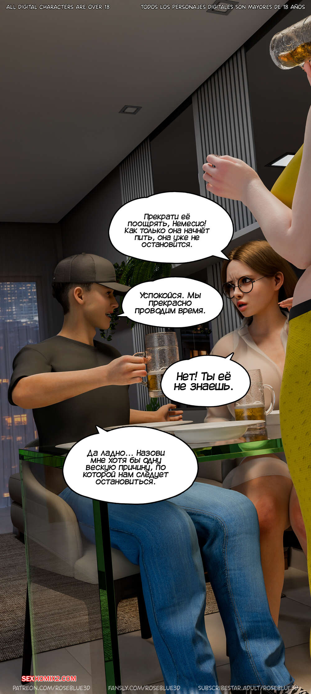 Порно комикс Свободен. Часть 6. Dismissed. Rose Blue 3D Немесио пришел домой к Карле, чтобы трахнуть красотку, но из ванны вышла соседка девушки Нина. Они сели втроем и Нина стала выпивать и отключилась, а Немесио перешел в наступление.