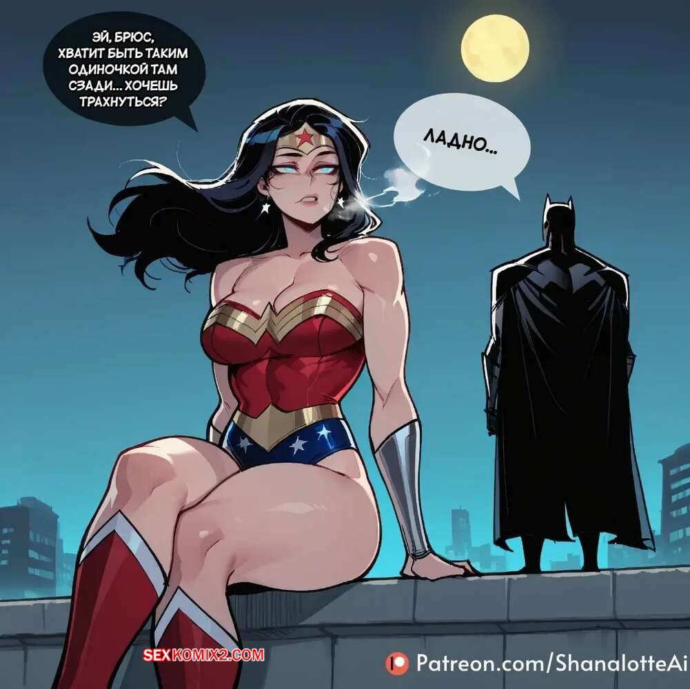 Порно комикс DC. Чудо Женщина. Wonder Woman. ShanalotteAI. Красотка Чудо Женщина встретилась с Бэтменом, желая отведать его член. Сисястая брюнетка разделась и отсосала его большой хуй, после чего раздвинула ножки и дала выебать свою пизду.