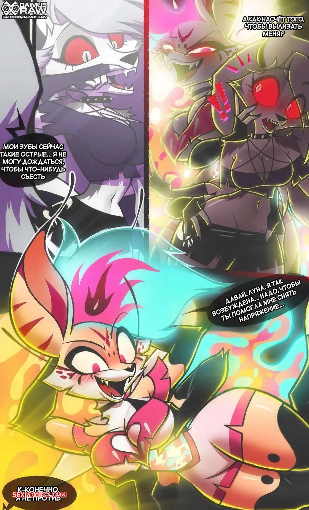 Порно комикс Адский босс. Луна и Би. Loona x Bee. Daimus Raw. Блондиночка невероятно возбудилась и решила повеселиться с красоткой Луной. Она стала ласкать и сжимать большие сиськи девушки, после чего отлизала ее влажную пизду.