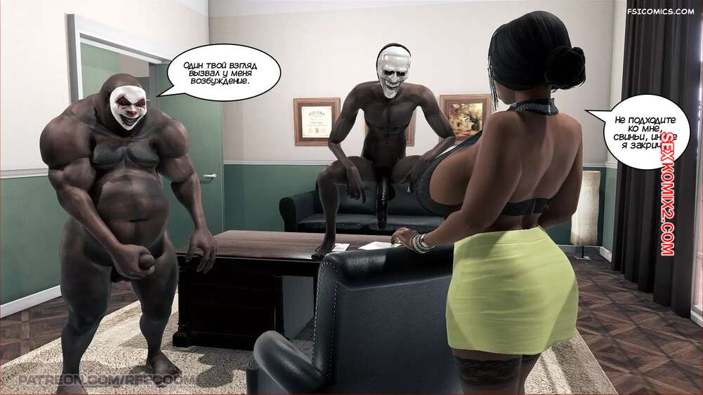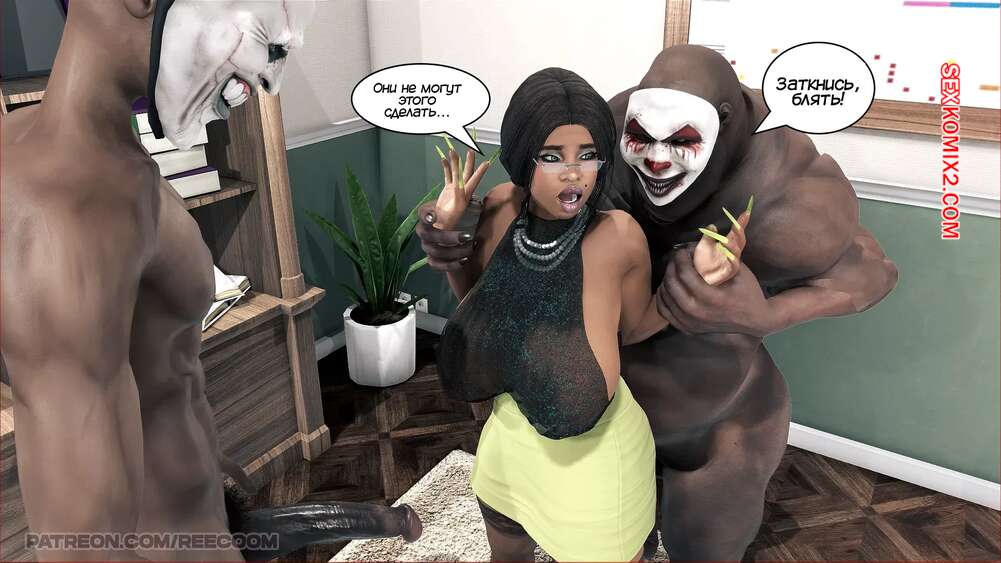 Порно комикс Секс в школе. Часть 2. Sex in School. Reecoom Два темнокожих инкуба поспешил в кабинет директрисы, чтобы с ней пошалить. Они раздели сучку и сунули ей в рот свои огромные члены, после чего как следует ее выебали.