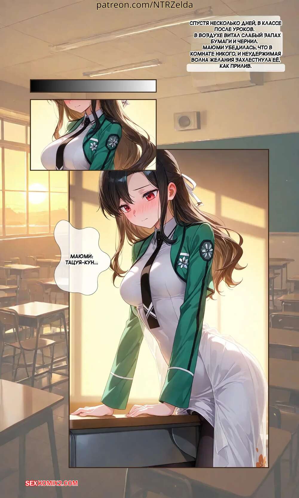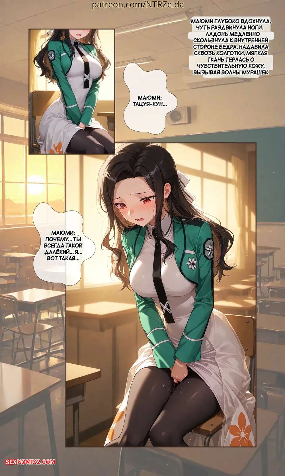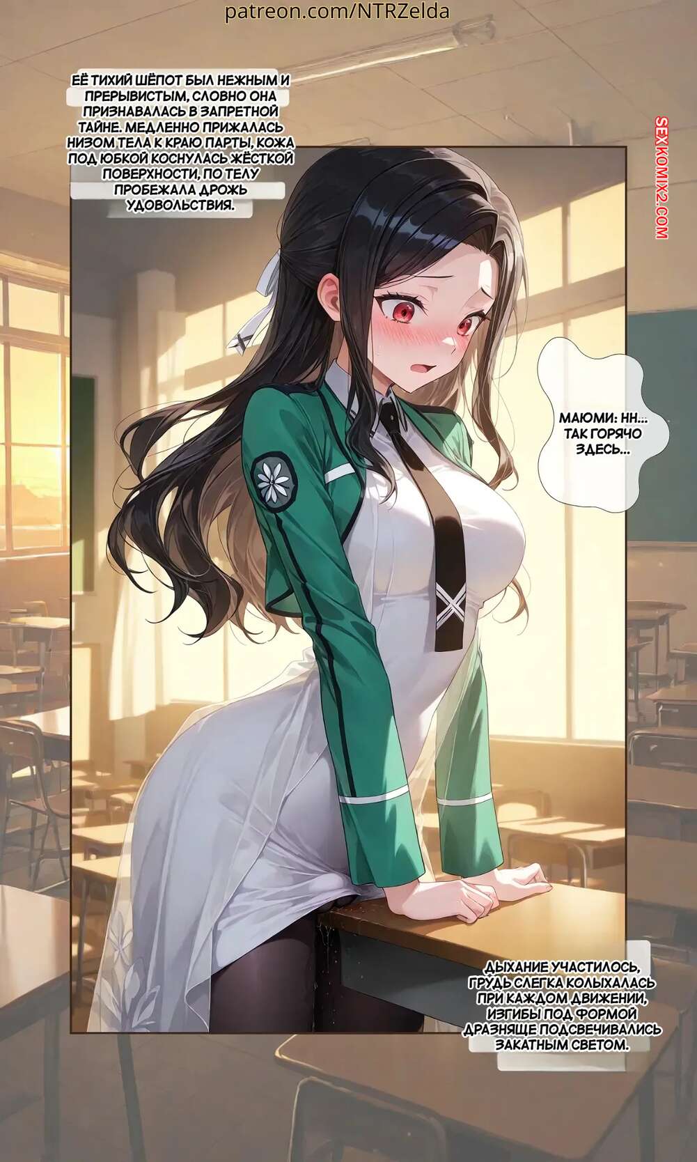 Порно комикс За закатом. Маюми. Beyond The Sunset. Mayumi. NTRzelda. Парень остался наедине в классе с горячей брюнеткой и стал лапать ее большие сиськи. Красотка возбудилась, после чего встала на колени и взяла в ротик член своего дружка.