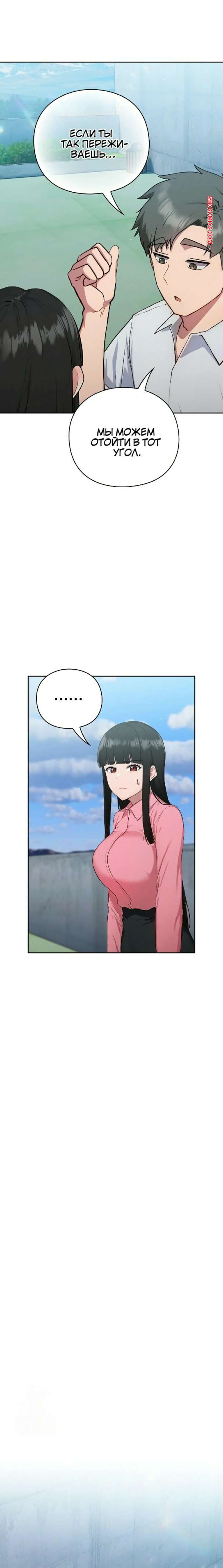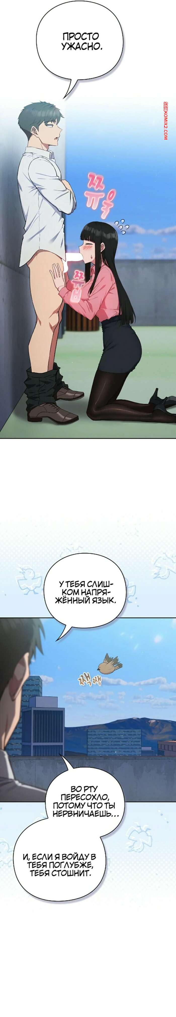 Порно комикс Забьём на работу. Часть 4 и 5 и 6 Горячая брюнетка позвала парня на крышу, чтобы остаться с ним наедине. Девушка хочет секса, поэтому встала на колени и взяла в ротик член парня, после чего он поставил ее раком и выебал ее пизду.