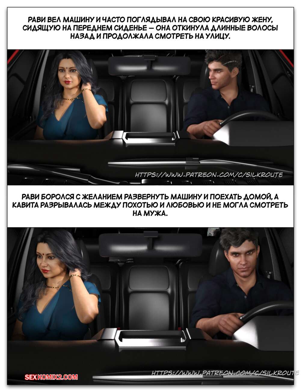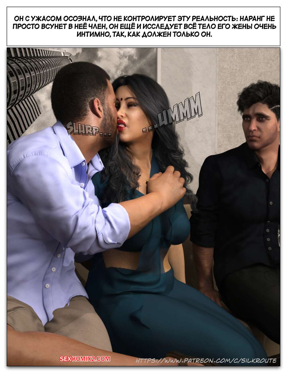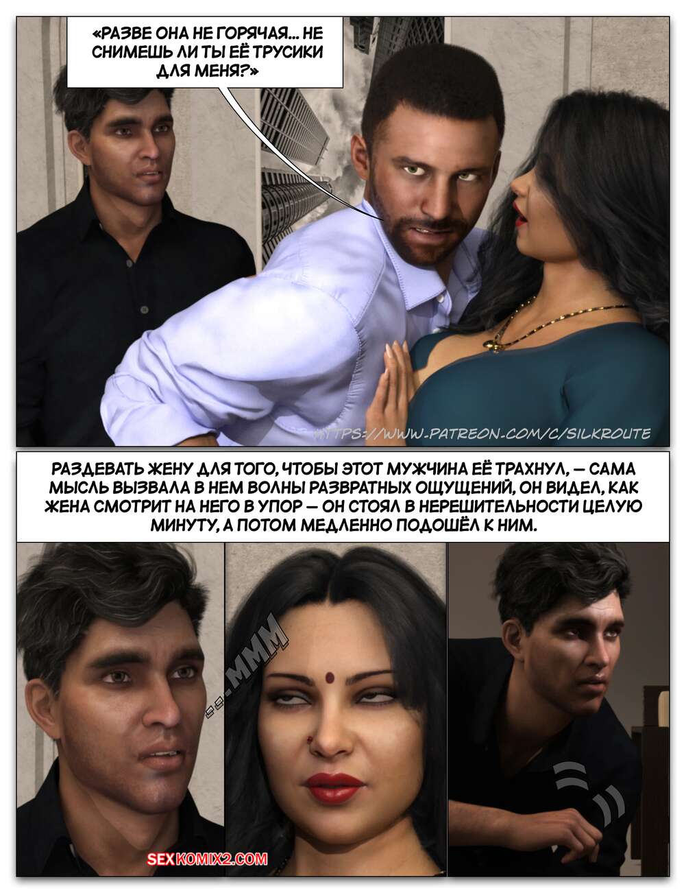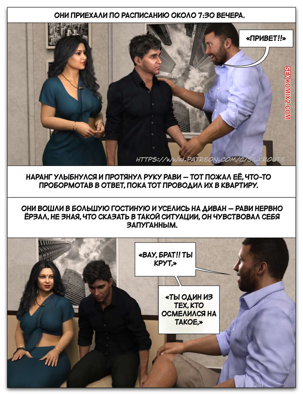 Порно комикс Забрать ее. Часть 3. Take Her. Silk Route Красотка с мужем пригласили к себе домой парня, с которым они ехали вместе. Тот стал целоваться девушку и стянул с нее трусики, после чего взял ее за руку и повел в спальню.