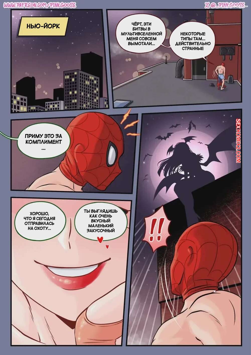 Порно комикс Морриган и Спайди. Morrigan x Spidey. PinkGoose. Красотка Морриган соблазняет Человека Паука, желая трахнуться. Девушка разделась и отсосала его большой хуй, после чего раздвинула ножки и дала выебать свою пизду.