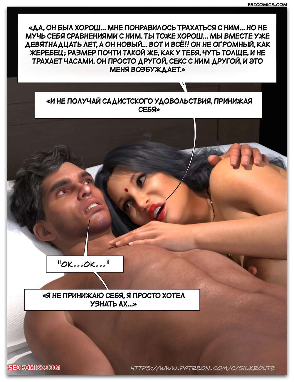 Порно комикс Забрать ее. Часть 4. Take Her. Silk Route Горячая милфа уединилась в спальне со своим любовником, пока ее муж ждал снаружи. Сучка взяла в ротик твердый хуй парня, после чего позвоила ему выебать свою пизду.