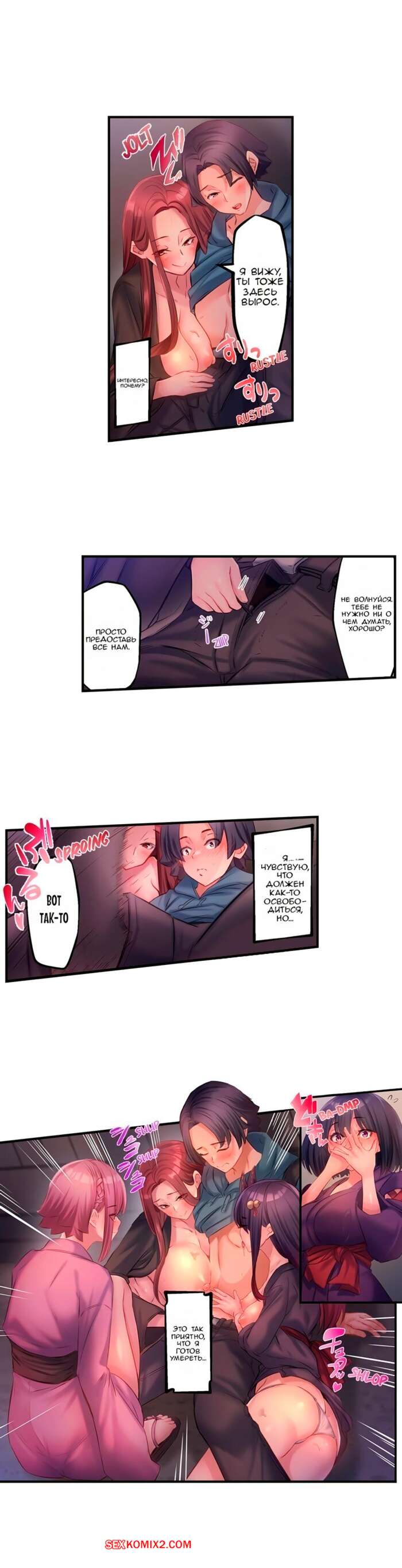 Порно комикс Исчезновение в нектаре загробного мира. Часть 3. Yukito Красотки окружили парня и стали его страстно целовать, оголяя свои сиськи. Само собой, у него быстро встал хуй, и одна из сисястых красоток поспешила его оседлать.