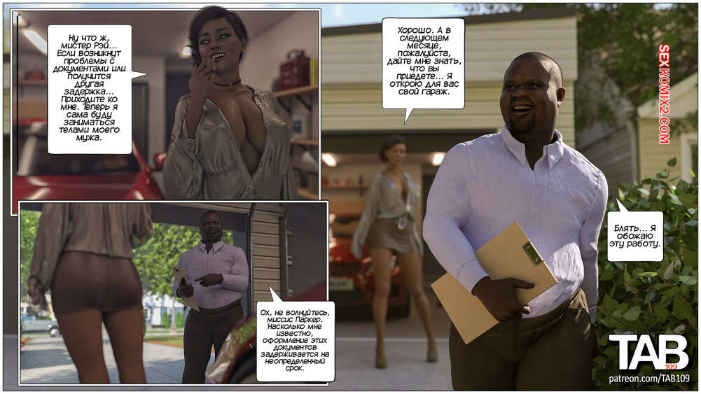 Порно комикс Взносы за репо. Repo Dues. TAB109. Темнокожий парень отправился домой к горячей милфе, чтобы забрать у ее мужа машину за долги. Красотка решила уладить вопрос лично и отсосала хуец нежданного гостя, после чего дала ему выебать свою пизду.