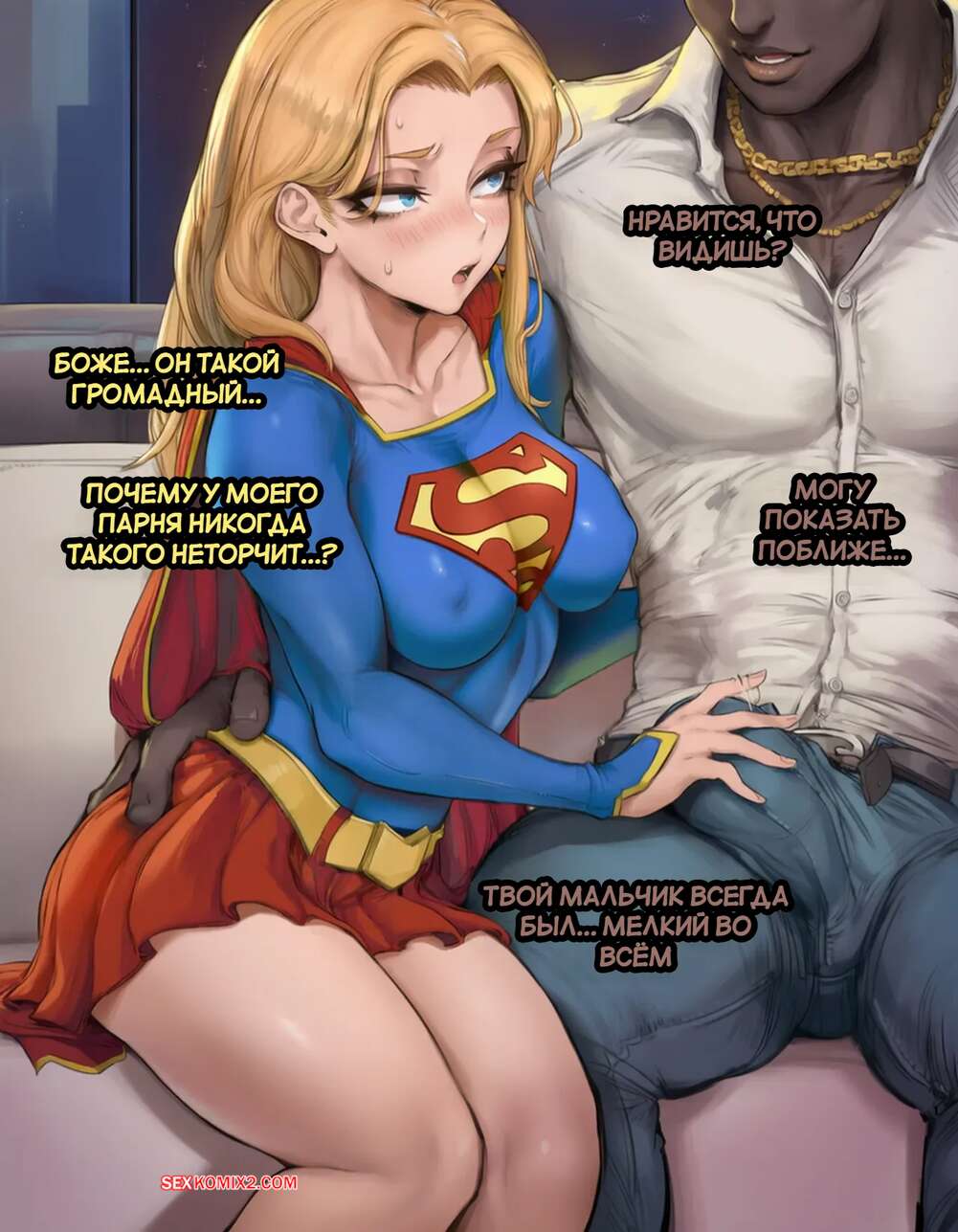Порно комикс DC. Супергерл Альби. Supergirl Albby Горячая красотка Супергерл устала от крошечного члена своего парня и нашла себе любовника. Он дает похотливой сучке отсосать свой огромный хуй, после чего как следует трахает ее пизду.