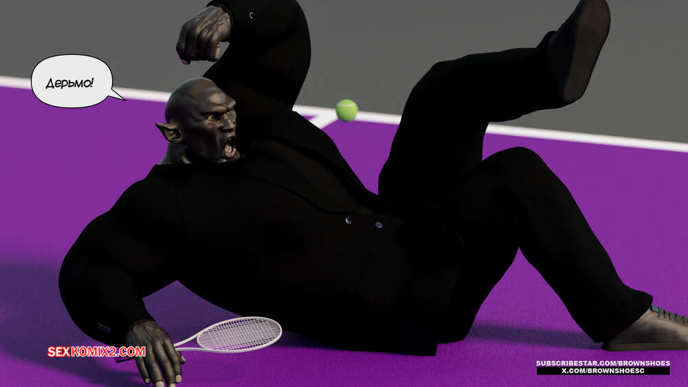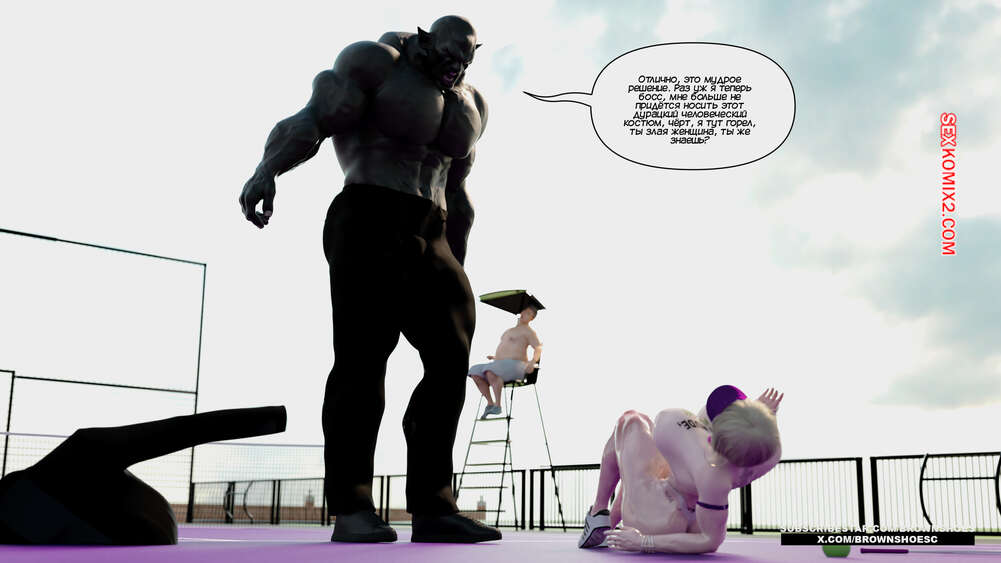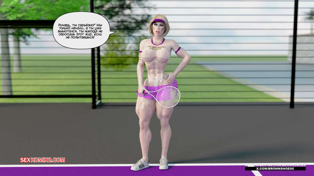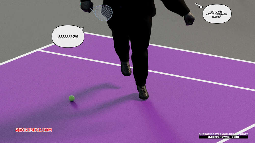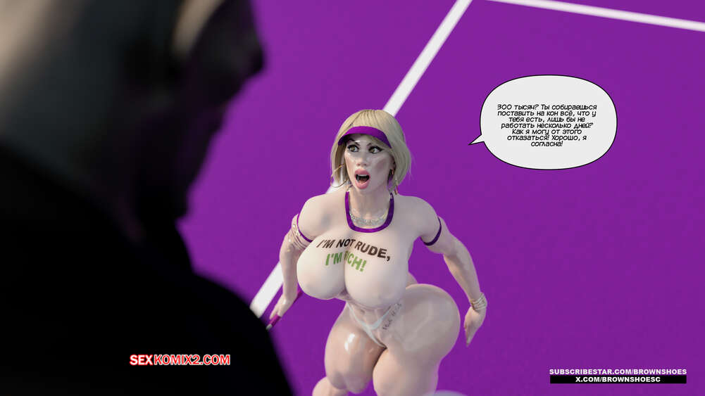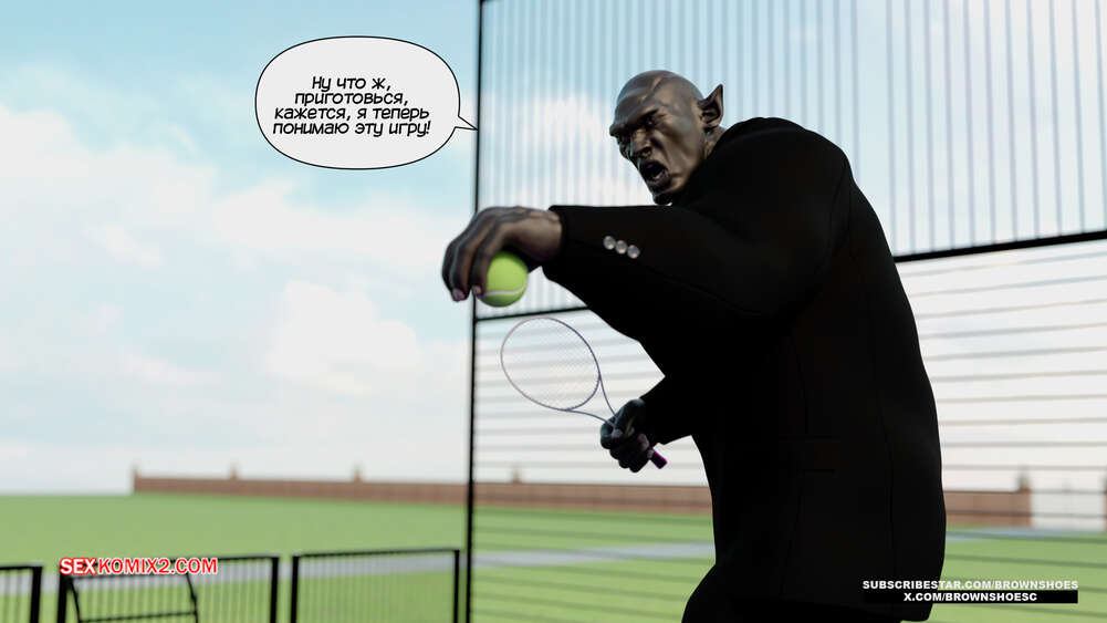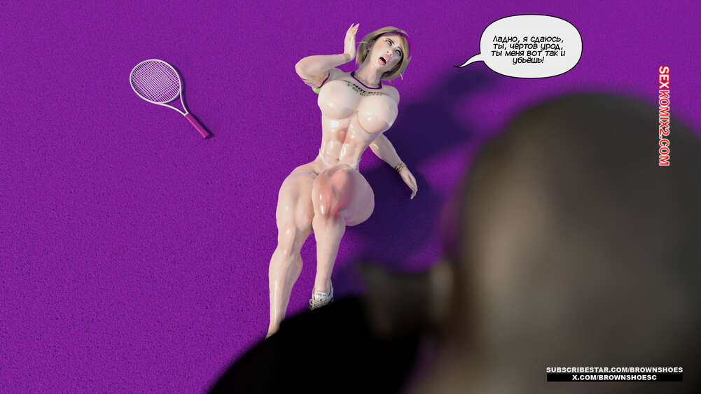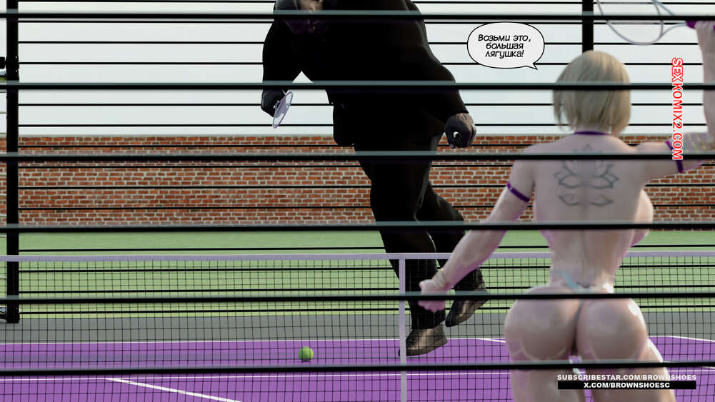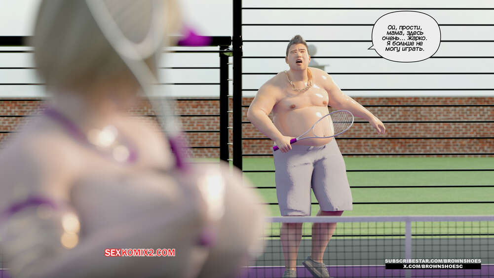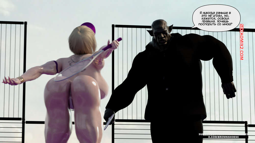 Порно комикс Рассказы Б.С. Часть 4. B.S Stories. Brown Shoes Горячая милфа проиграла в теннис монстру и теперь стала его рабныей на выходные. Он сразу сунул сучке отсосать свой хуй, а затем, погодня немного, выебал ее пизду.