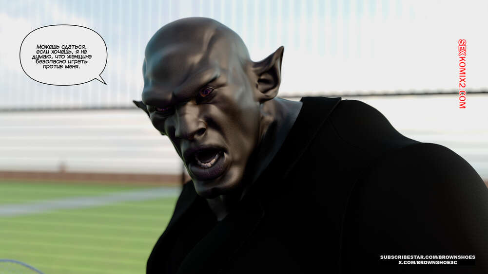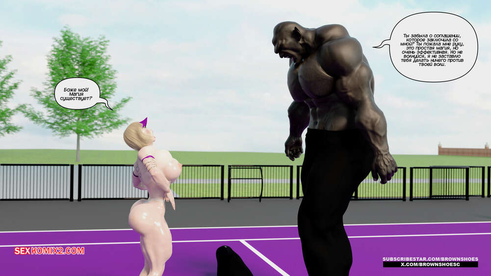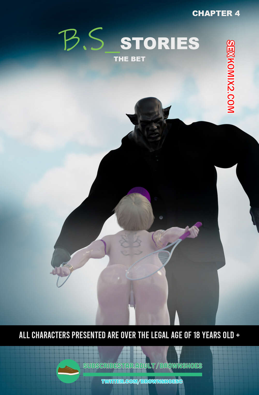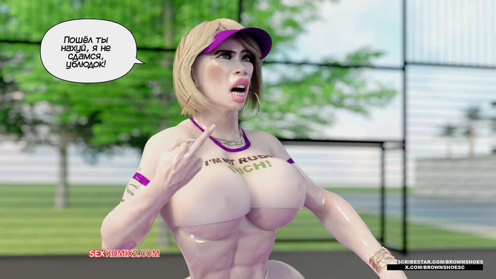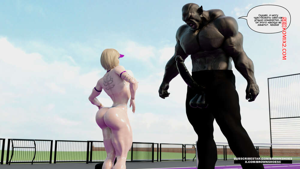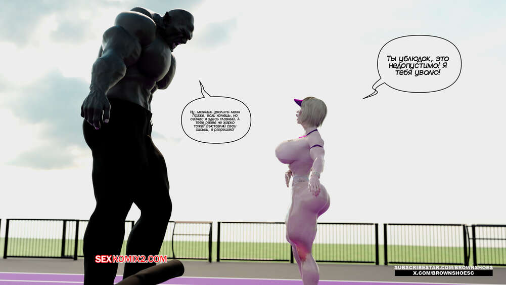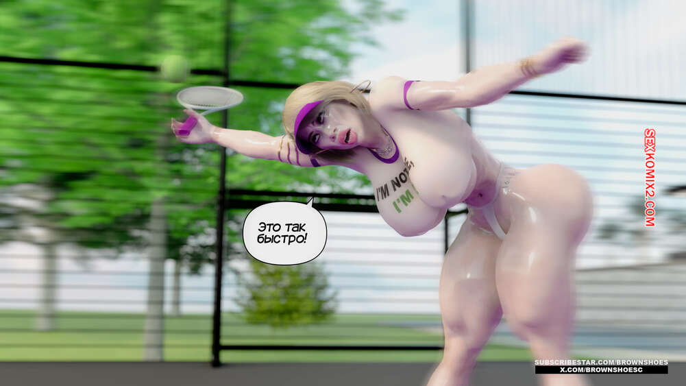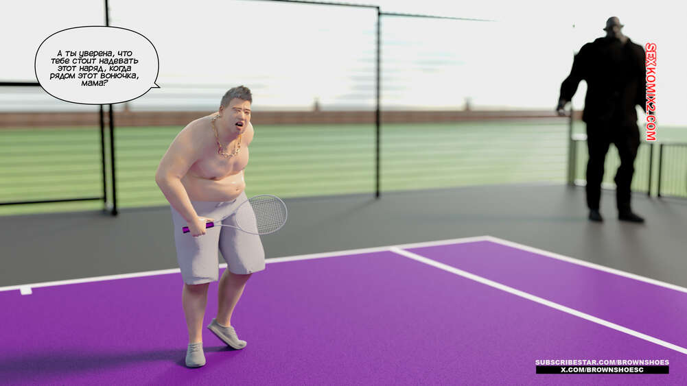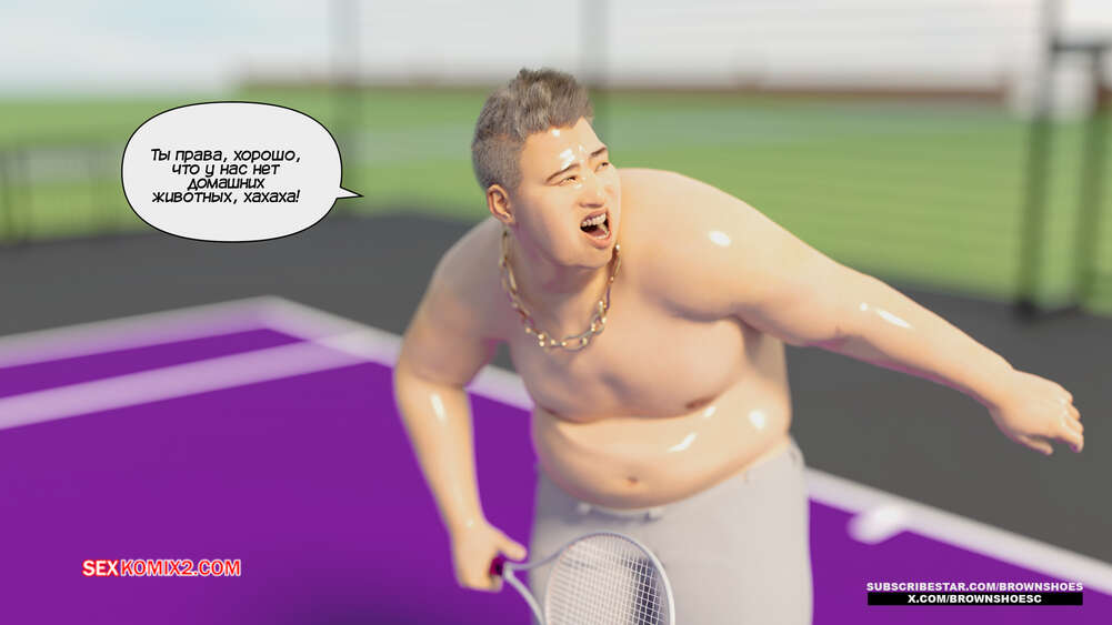 Порно комикс Рассказы Б.С. Часть 4. B.S Stories. Brown Shoes Горячая милфа проиграла в теннис монстру и теперь стала его рабныей на выходные. Он сразу сунул сучке отсосать свой хуй, а затем, погодня немного, выебал ее пизду.