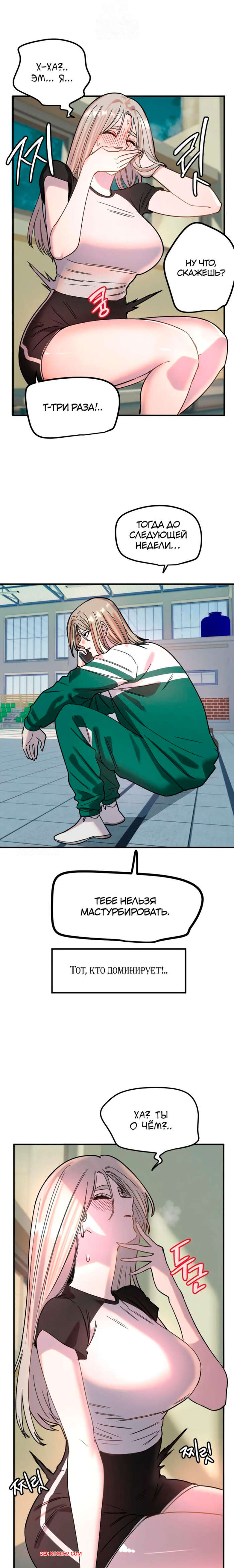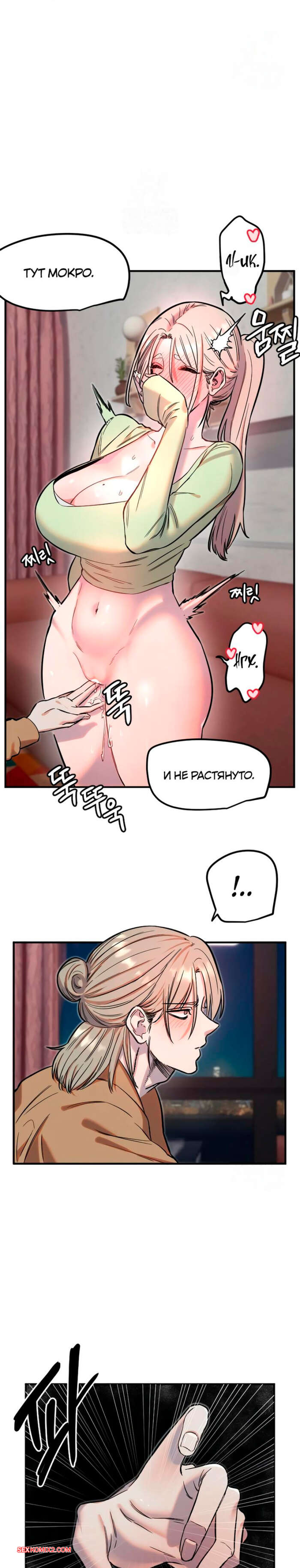 Порно комикс Манито. Часть 37 и 38 и 39. manitto Горячая блондинка возбуждена и хочет секса. Она разделась и стала ласкать пальчиками свою пизденку, после чего к ней присоединился ее дружок и сунул ей член в ротик.